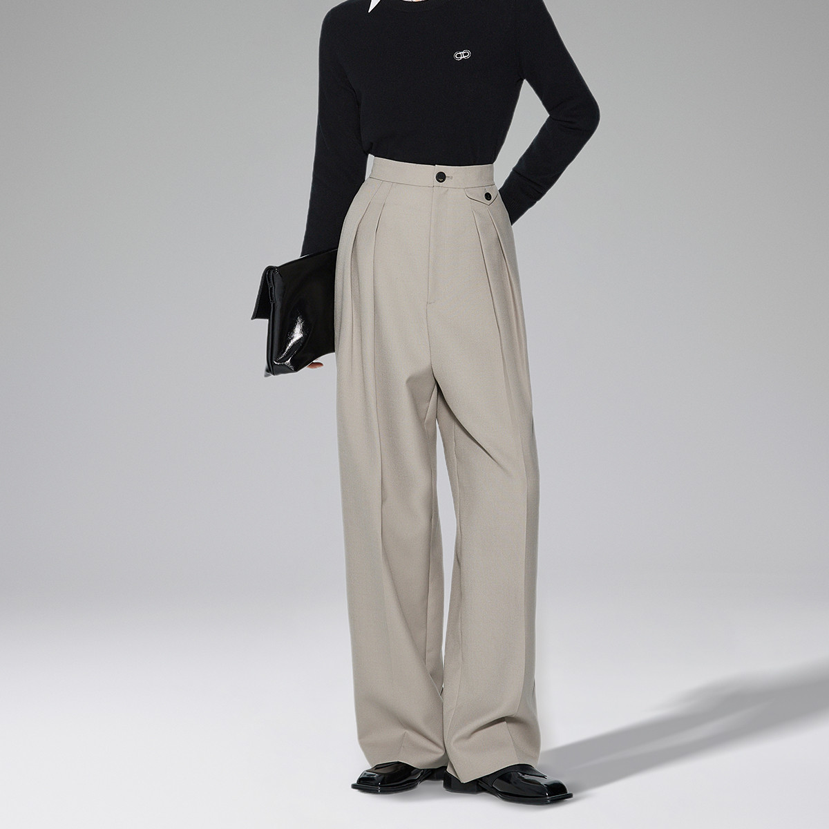 【春季款】都市通勤款宽松垂坠感直筒显瘦高腰西装休闲裤女 568539
