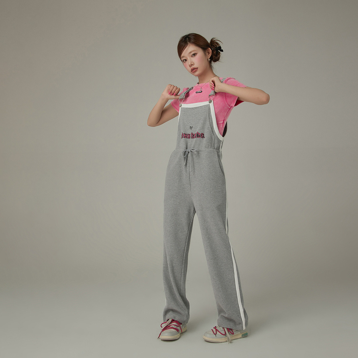 字母绣花背带裤女春秋撞色华夫格抽绳宽松休闲长裤子 752979