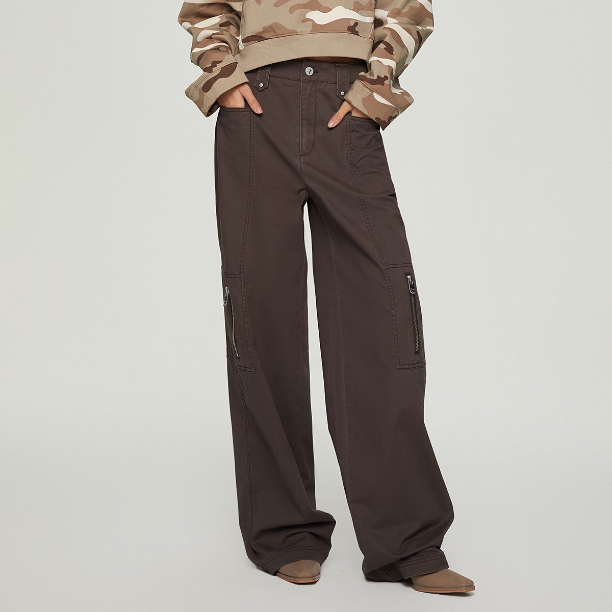 通勤OL风阔腿裤女装时尚简约咖啡色休闲裤子 366476