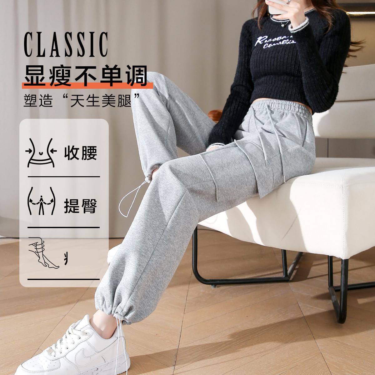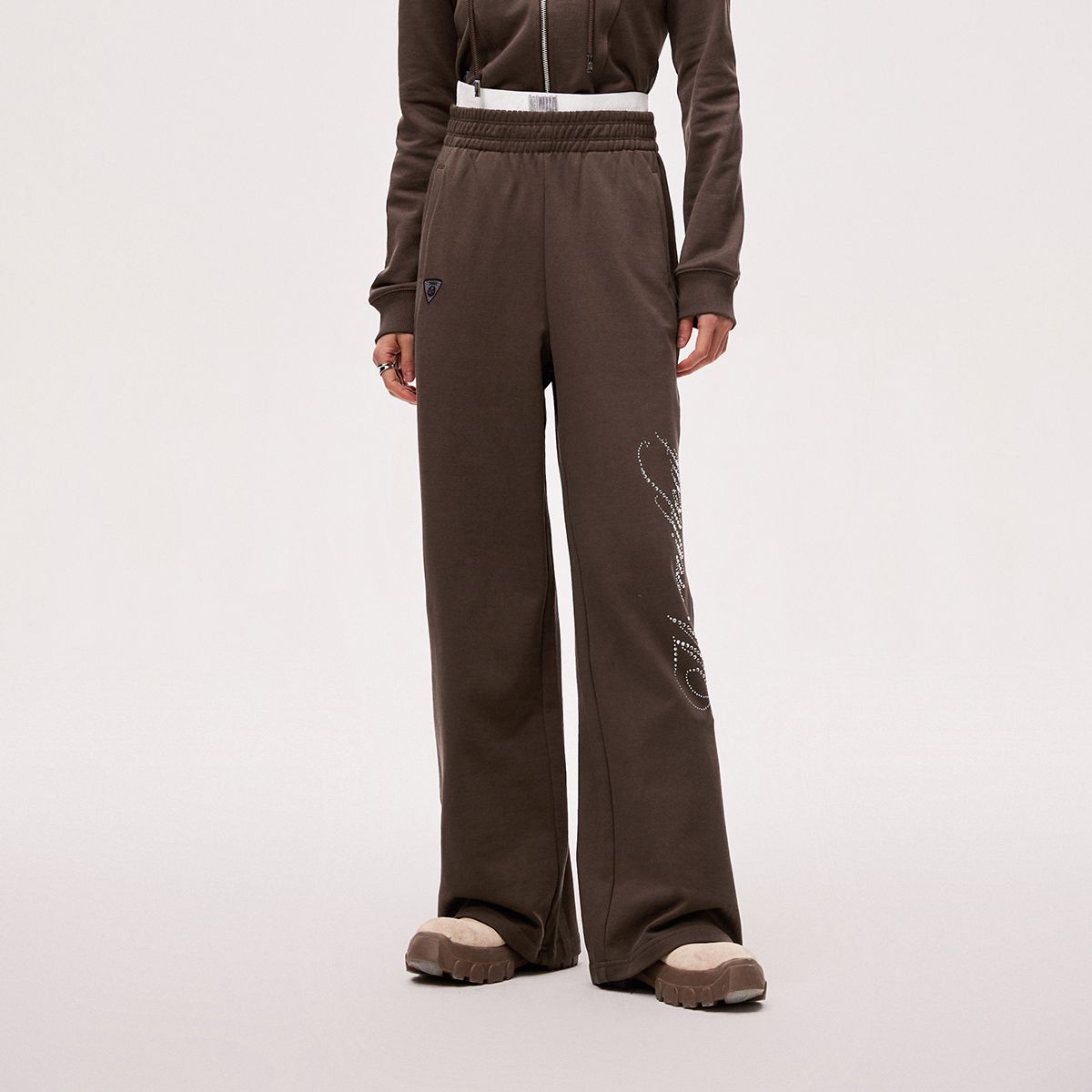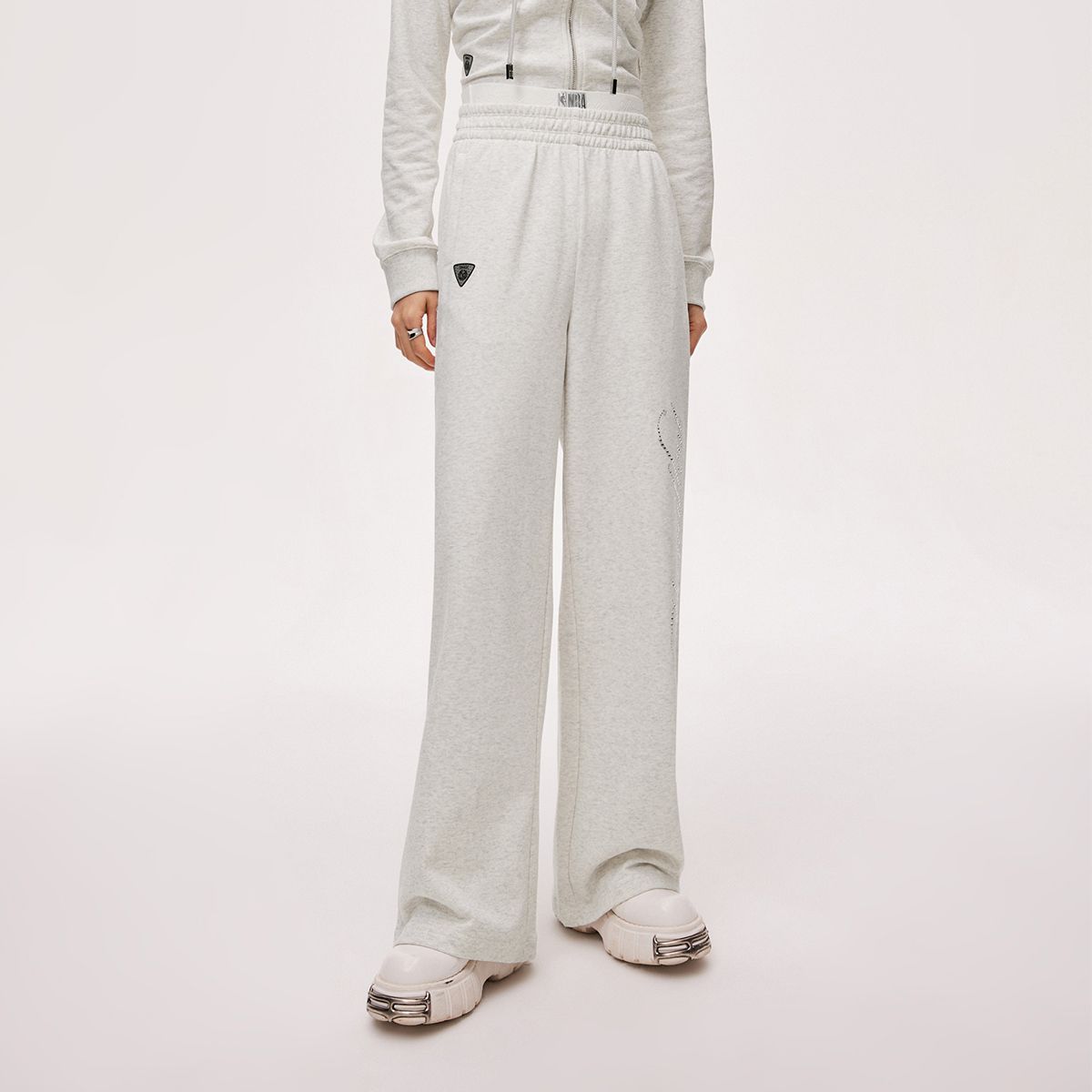 地素烫钻长裤春秋运动休闲棉质阔腿裤女 771723
