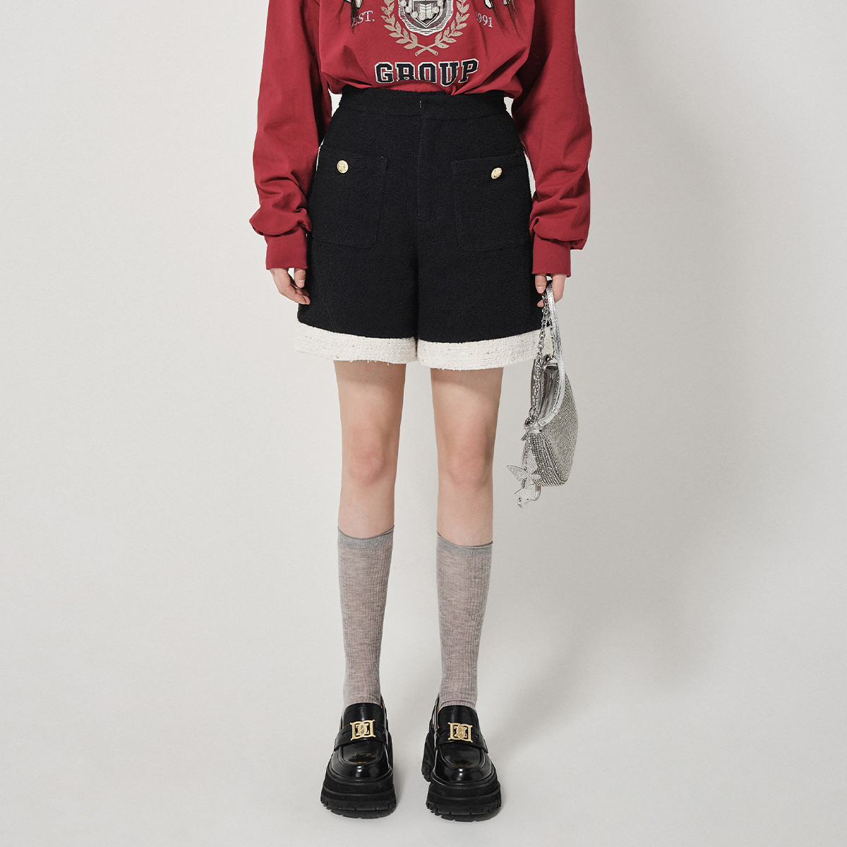 地素粗花呢短裤秋小香风拼色设计宽松休闲裤女 558667