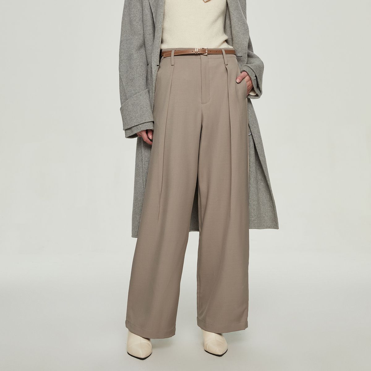 地素秋休闲裤时尚休闲宽松带腰带阔腿裤长裤女 241355