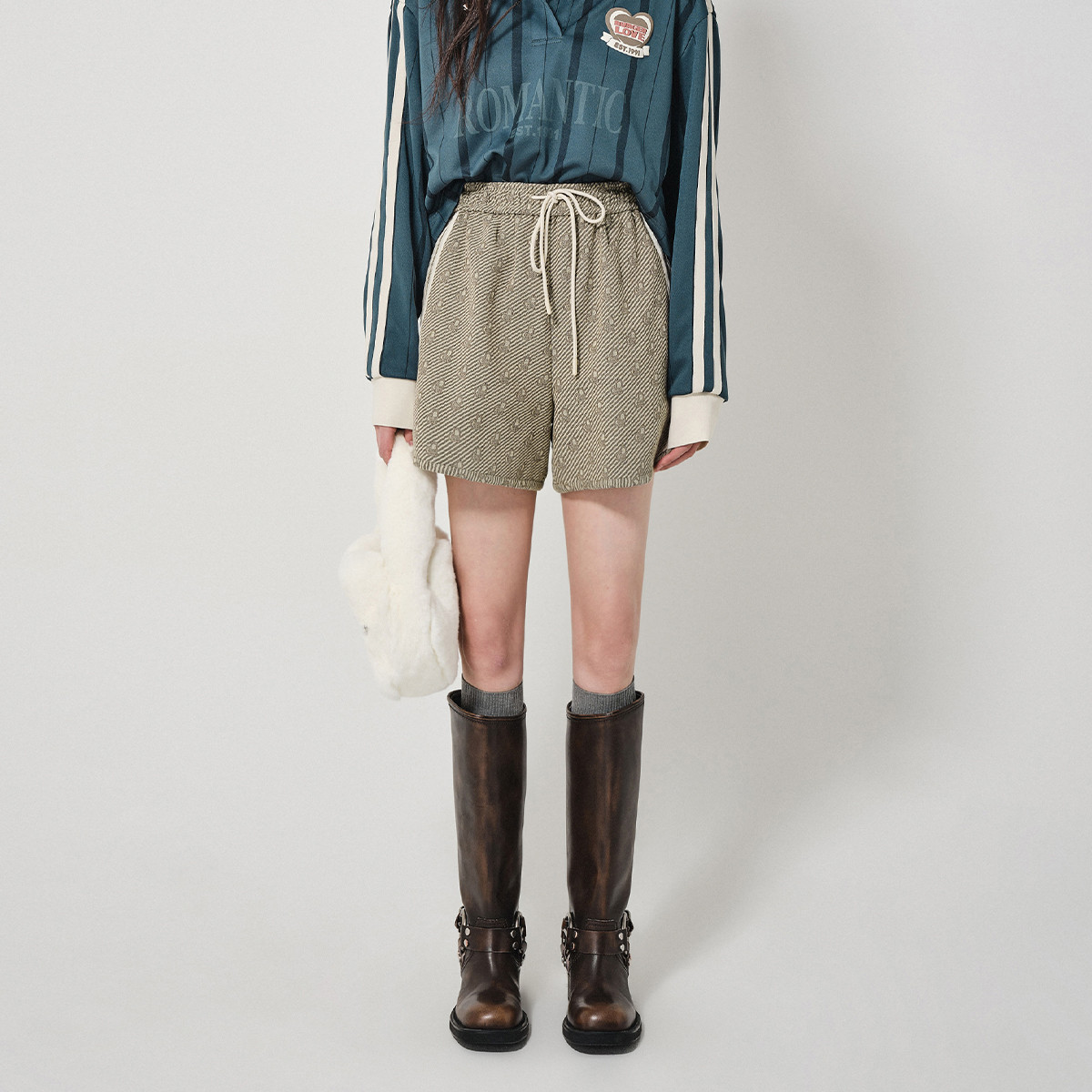 地素夏秋专柜复古运动爱心提花边缘撞色针织短裤女 716939