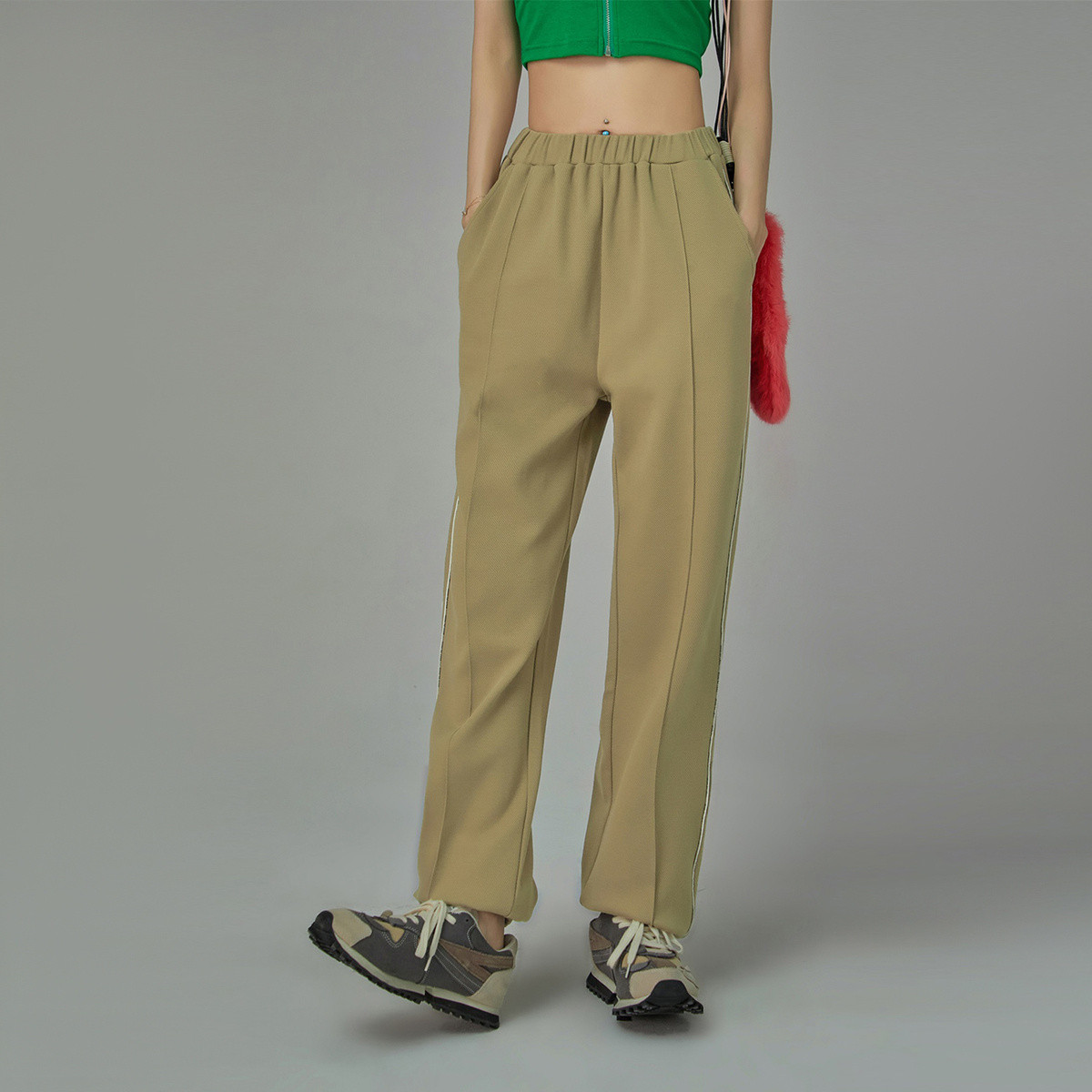 【美拉德时髦都市】春秋直筒松紧腰女裤长裤开衩织带休闲裤子女 941697
