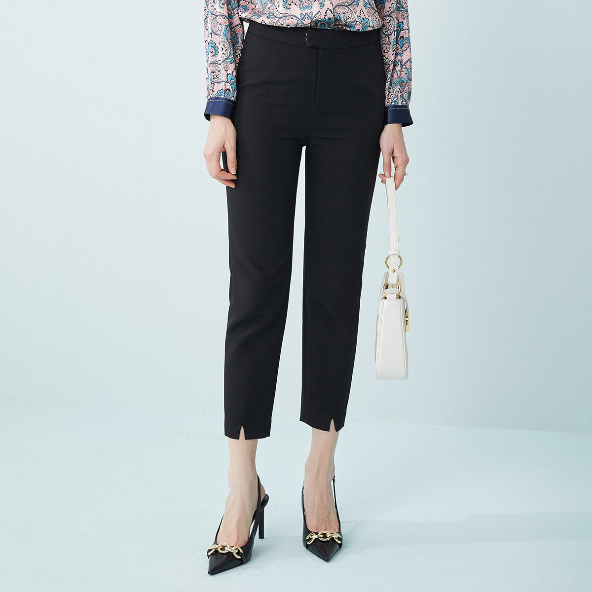 春夏前中开衩小脚裤九分裤女西装裤通勤休闲裤 600607