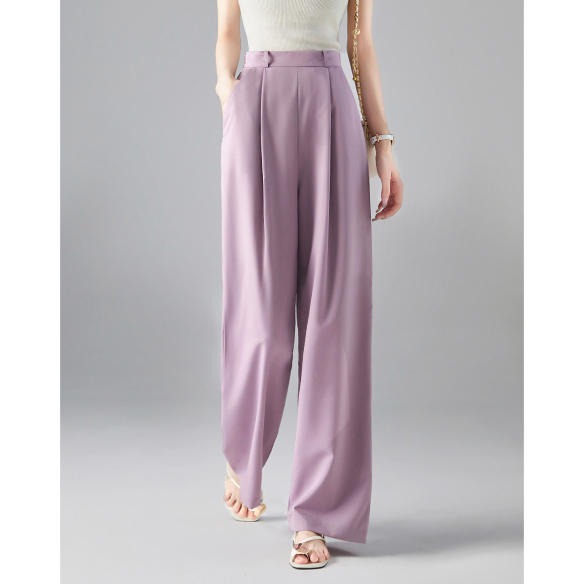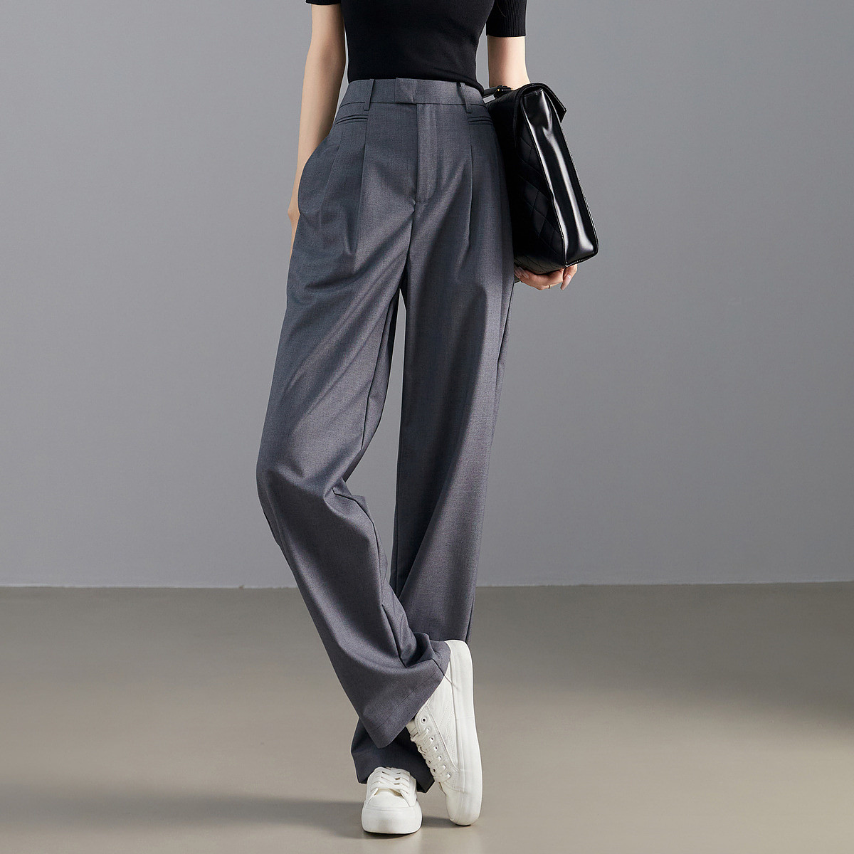 【雅绅风度】春季通勤简约中腰直筒裤垂感舒适遮胯藏肉女式休闲裤 123329