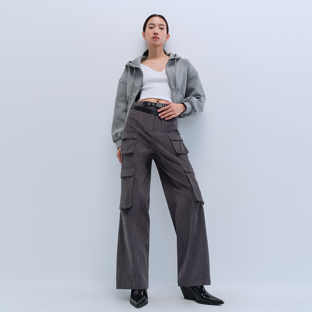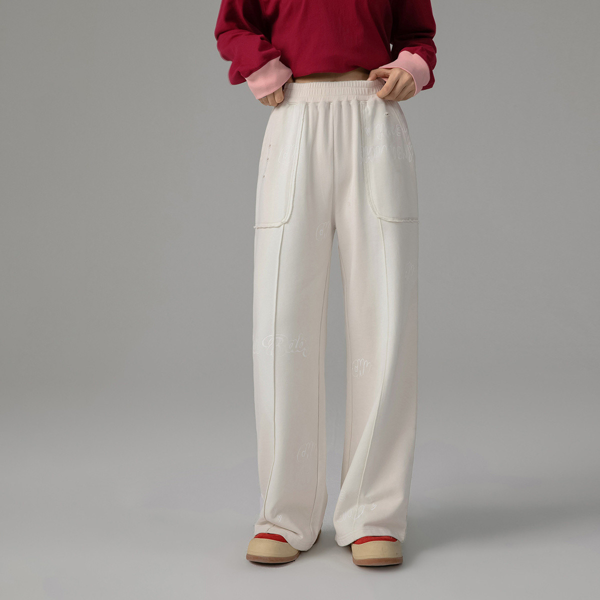 米子旗春夏季款宽松休闲长裤松紧腰口袋设计阔腿裤 096538