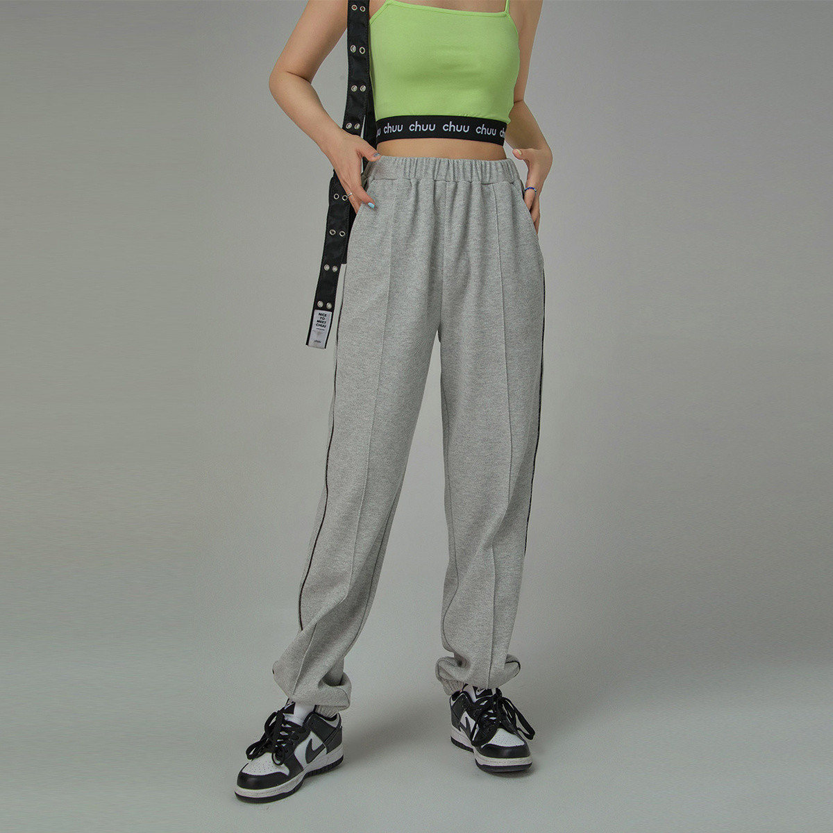 CHUU束脚休闲裤女春秋高腰宽松显瘦洋气百搭运动裤 536275