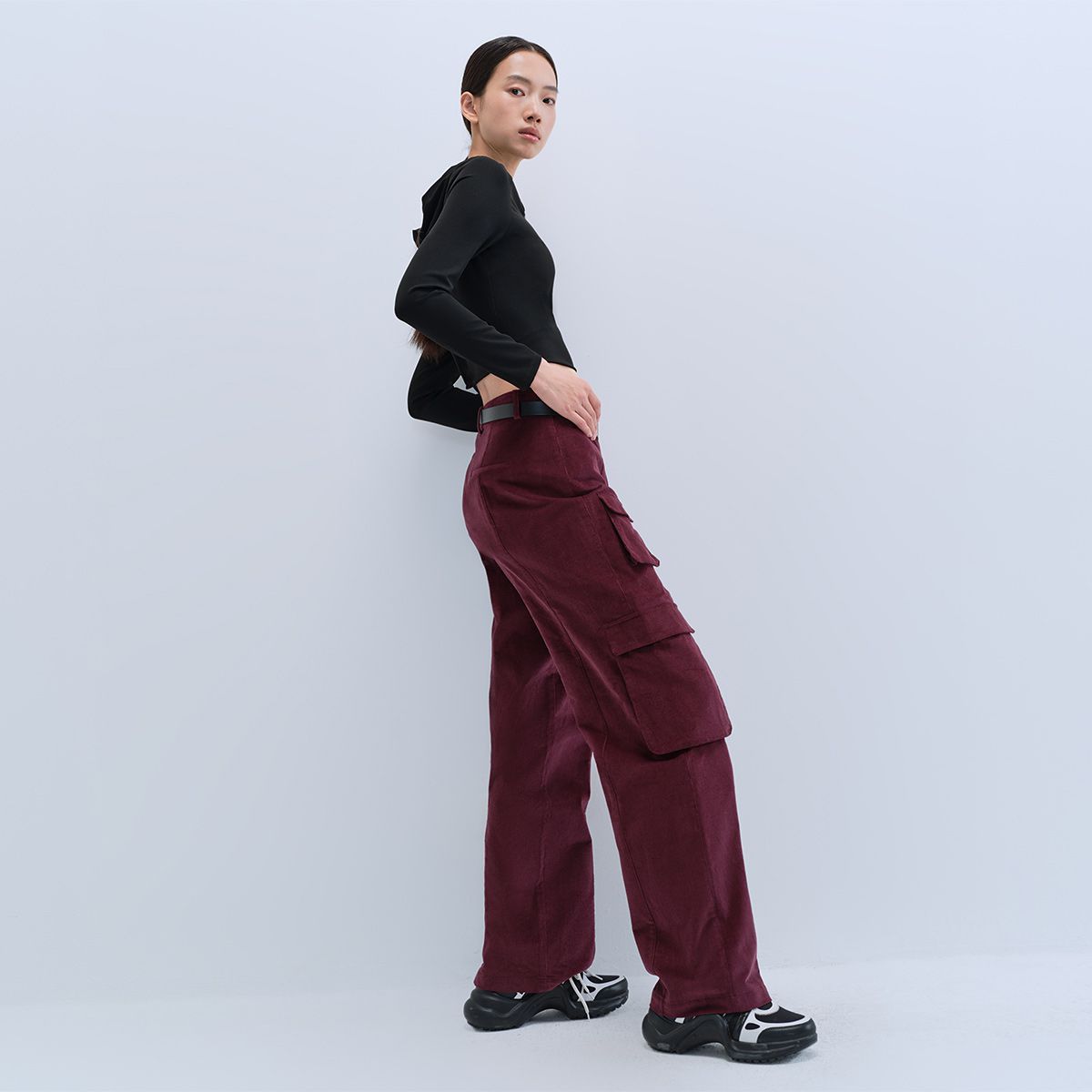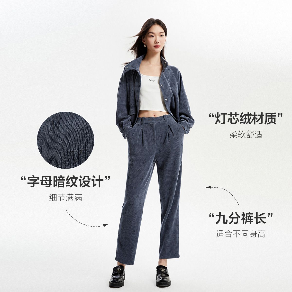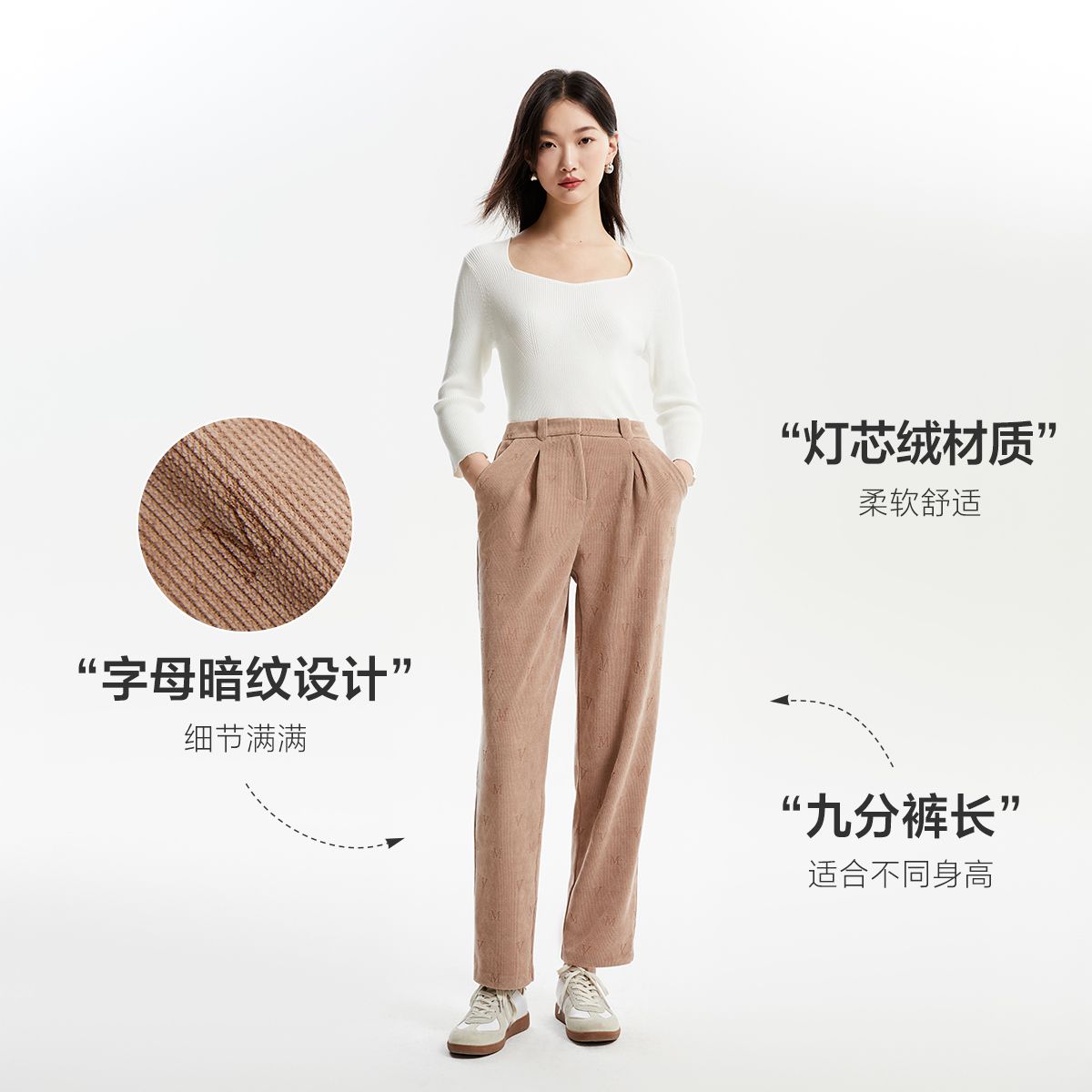 【春夏专柜款】九分高腰灯芯绒简约休闲裤女气质百搭时尚 756241