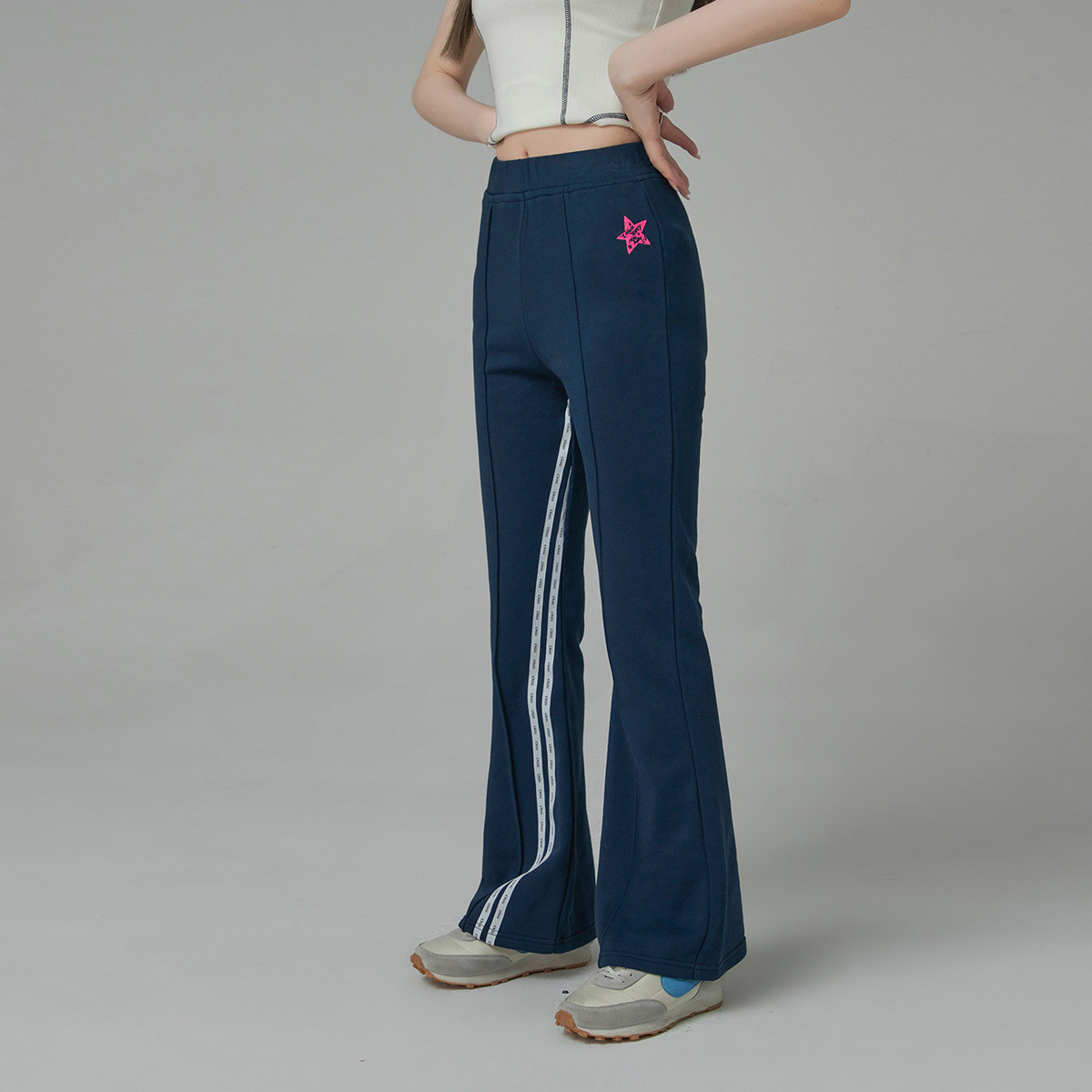 松紧腰束脚休闲裤女春秋小个子卫裤撞色运动长裤子 481683