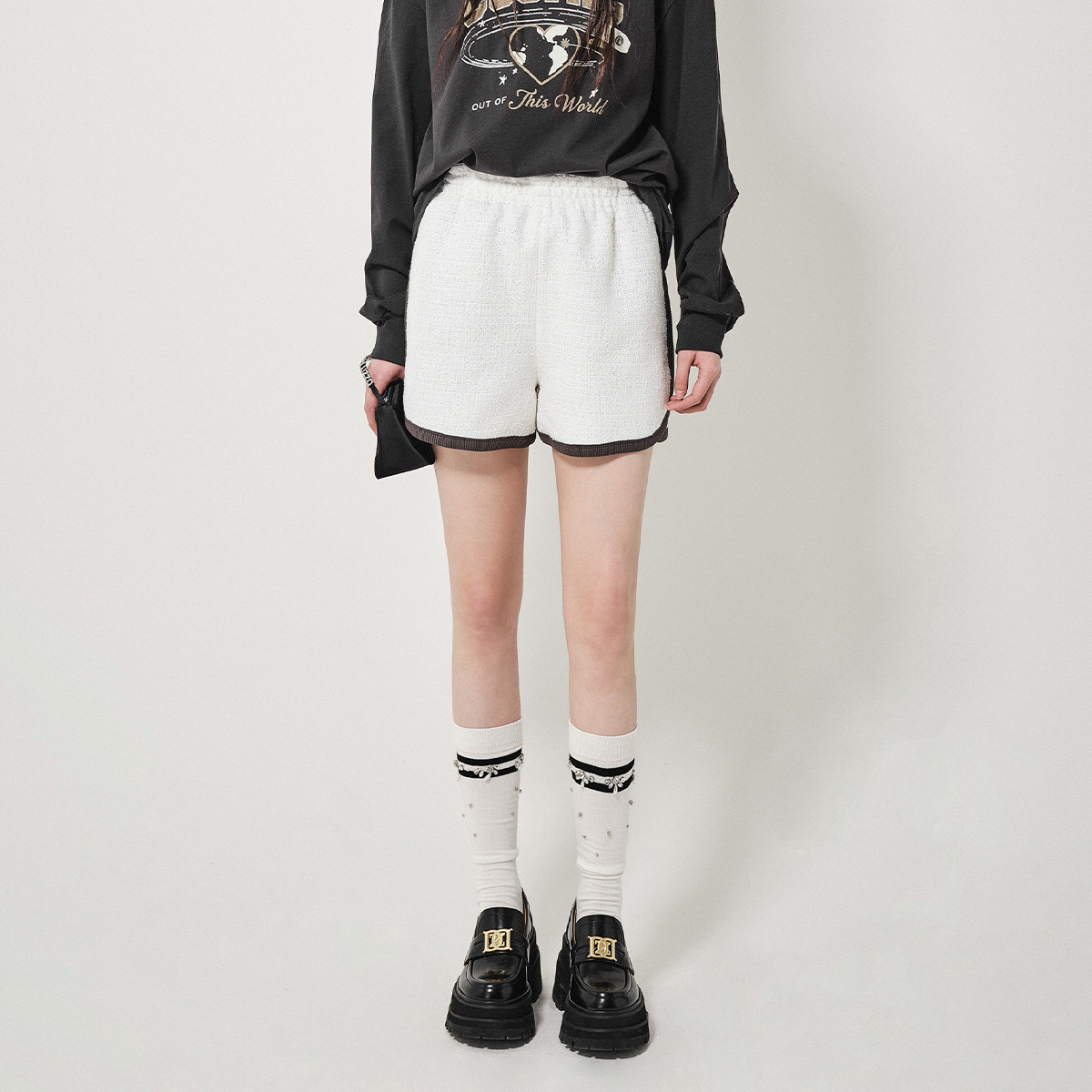 地素休闲裤春秋季专柜粗花呢运动风撞色短裤 471947