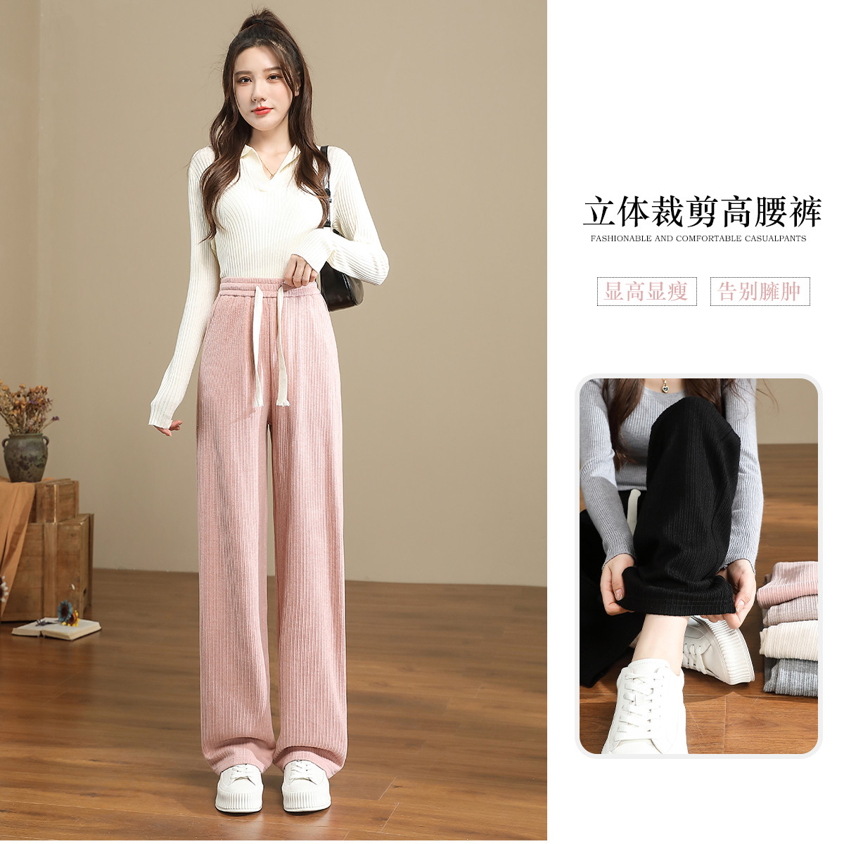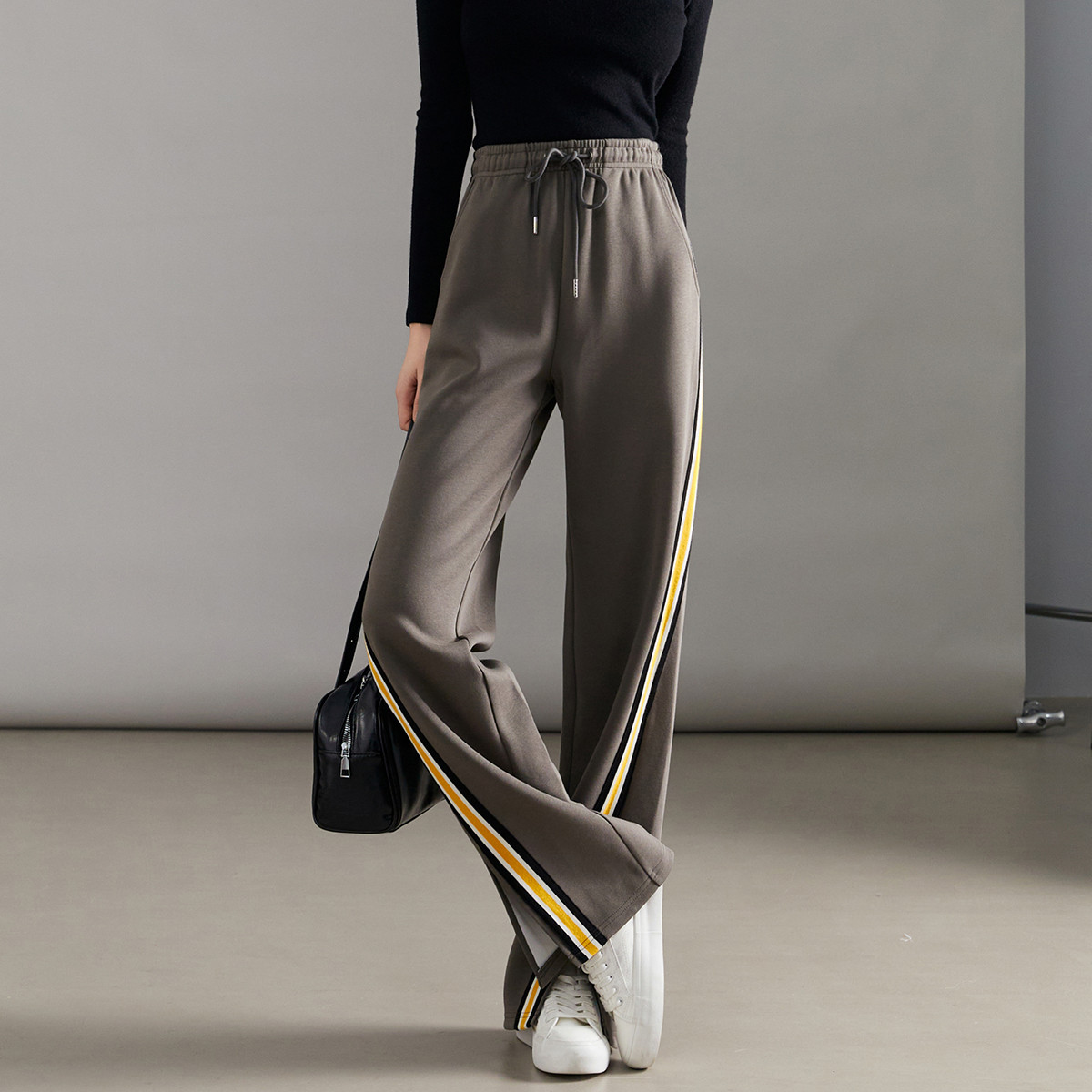 【含羊毛】美拉德阔腿裤女加厚春夏时髦保暖系绳休闲裤 744543