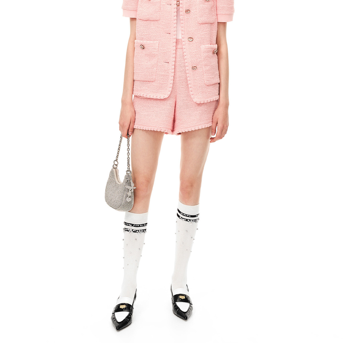 地素休闲裤夏秋季专柜小香风粗花呢波浪边短裤女 496139