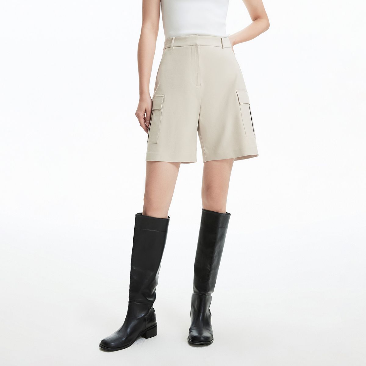 地素环保皮短裤春秋季直筒简约通勤休闲短裤女 725899