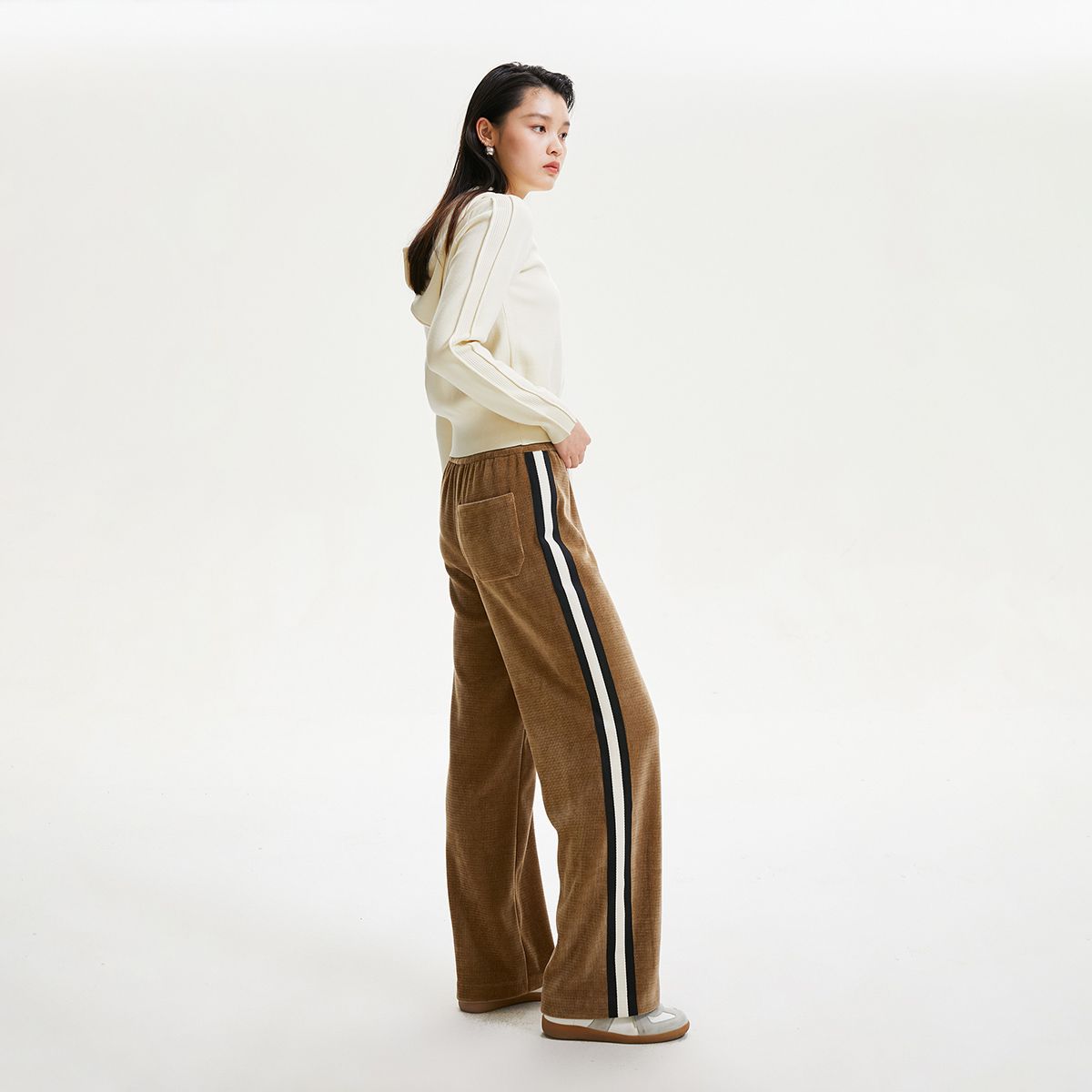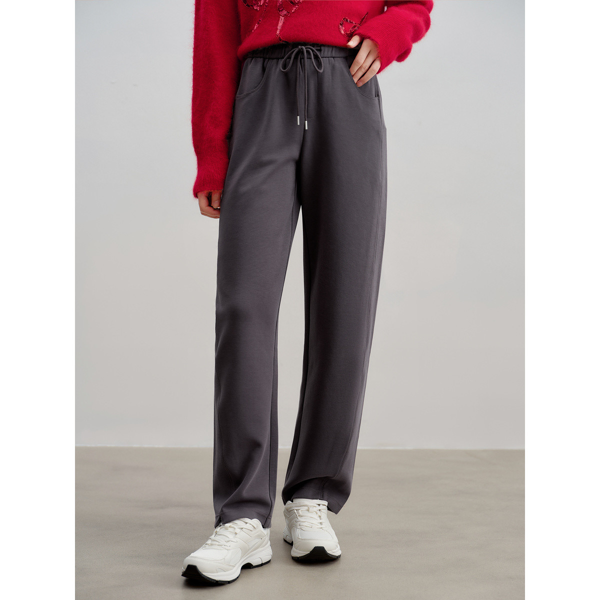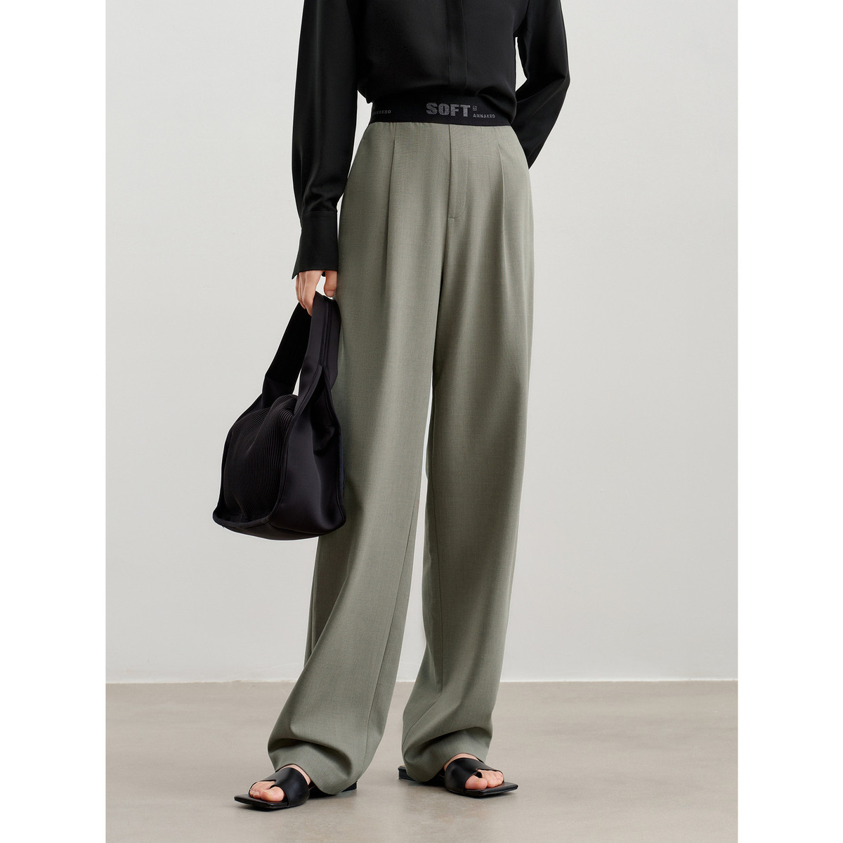 玖姿旗下安娜蔻系列简约直筒松紧腰开叉休闲裤女春季 413452