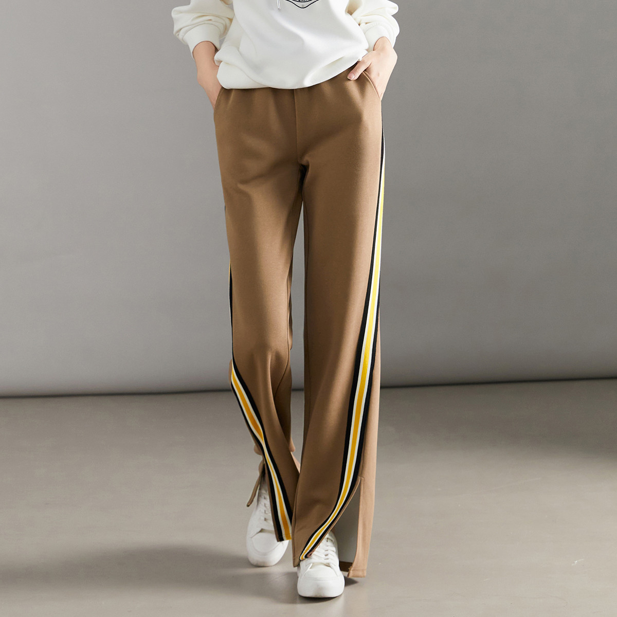 【美拉德时髦都市】春秋直筒松紧腰女裤长裤开衩织带休闲裤子女 933505