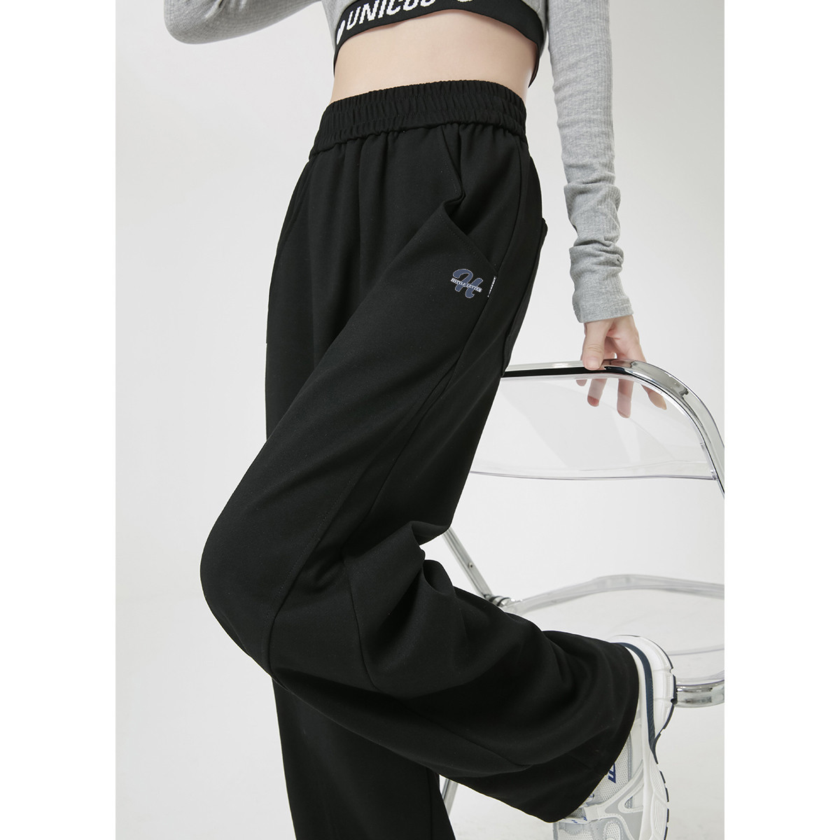 小熊春秋款优可丝直筒裤阔腿裤长裤黑色裤子宽松女式 690177
