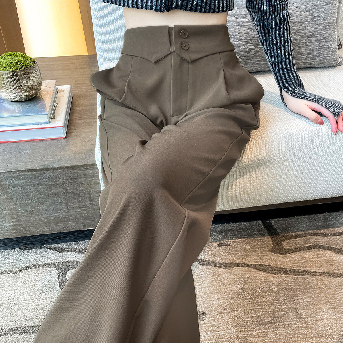 【腰头翻领设计】春季款女式排扣垂感直筒裤简约日常西装休闲裤 212043
