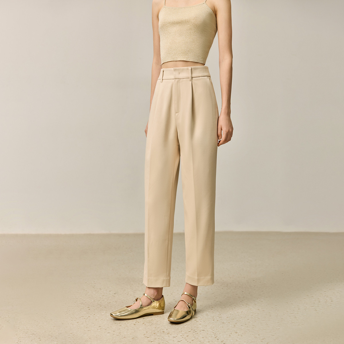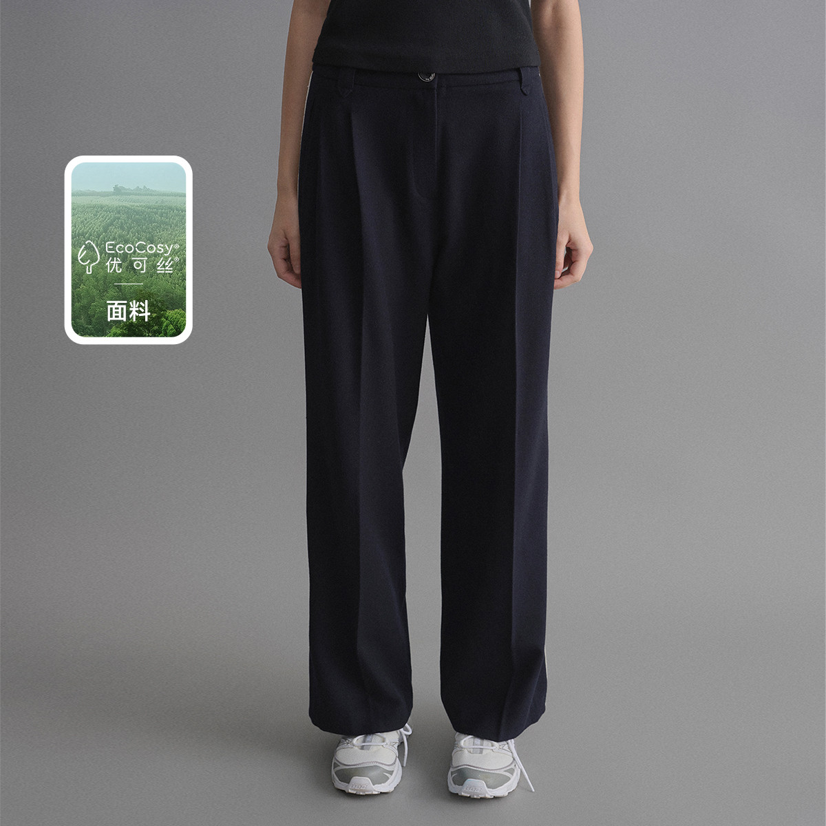 【腰头翻领设计】春季款女式排扣垂感直筒裤简约日常西装休闲裤 298059
