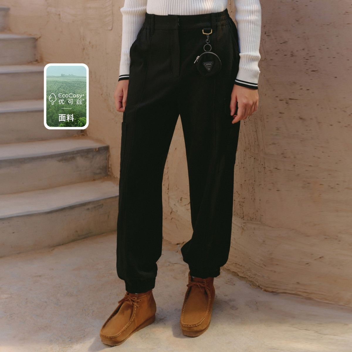 小熊春秋款优可丝小脚裤运动裤休闲裤束脚裤黑色裤子 326849