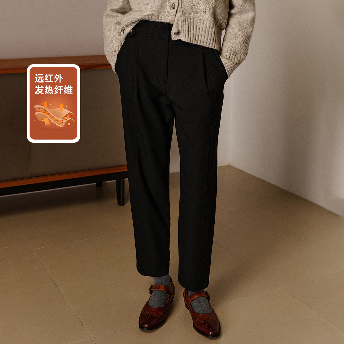 小熊春秋款远红外发热小脚裤时尚黑色裤子女士 783681