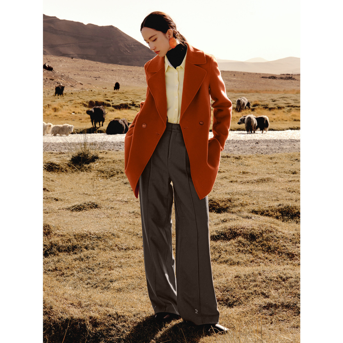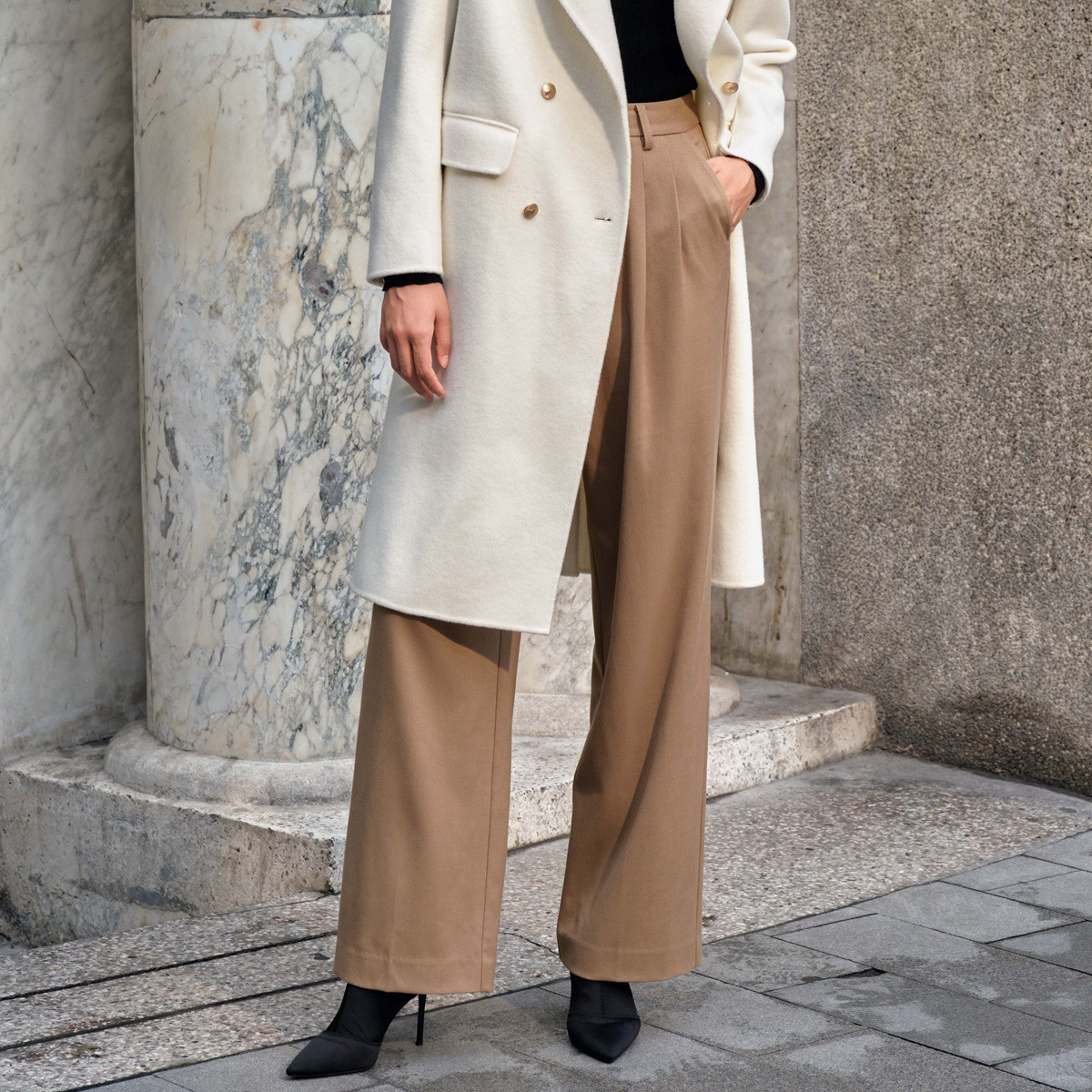 玖姿旗下安娜蔻系列通勤干练阔腿裤宽松长裤女冬季 429452