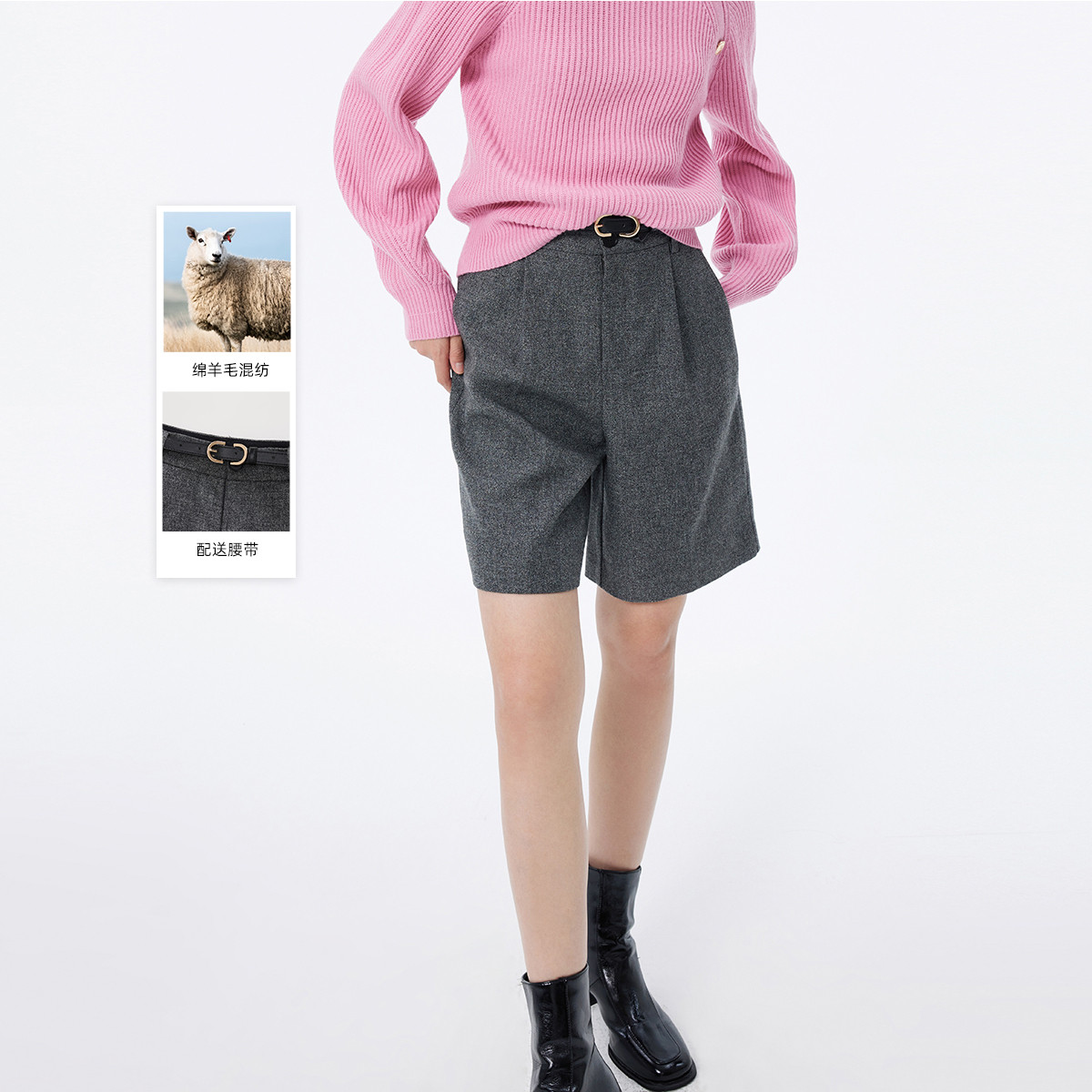 春季裤子女春季绵羊毛时尚都市通勤气质显瘦高腰休闲短裤西裤 337627