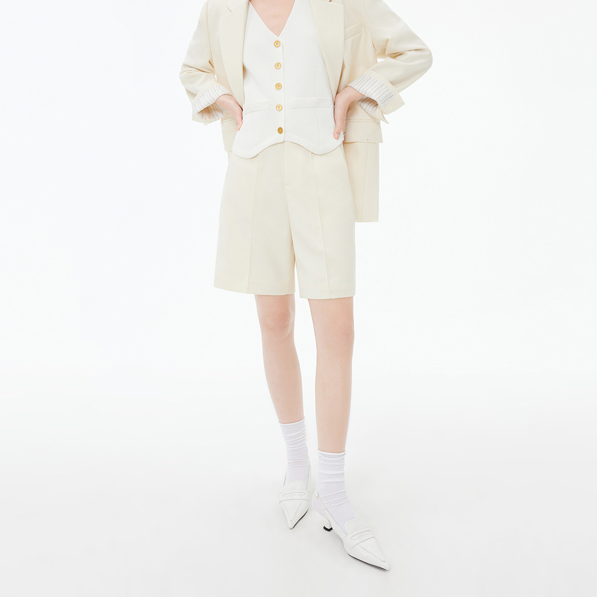 短裤女春季复古都市通勤显瘦优雅高腰直筒休闲西装女短裤 677211