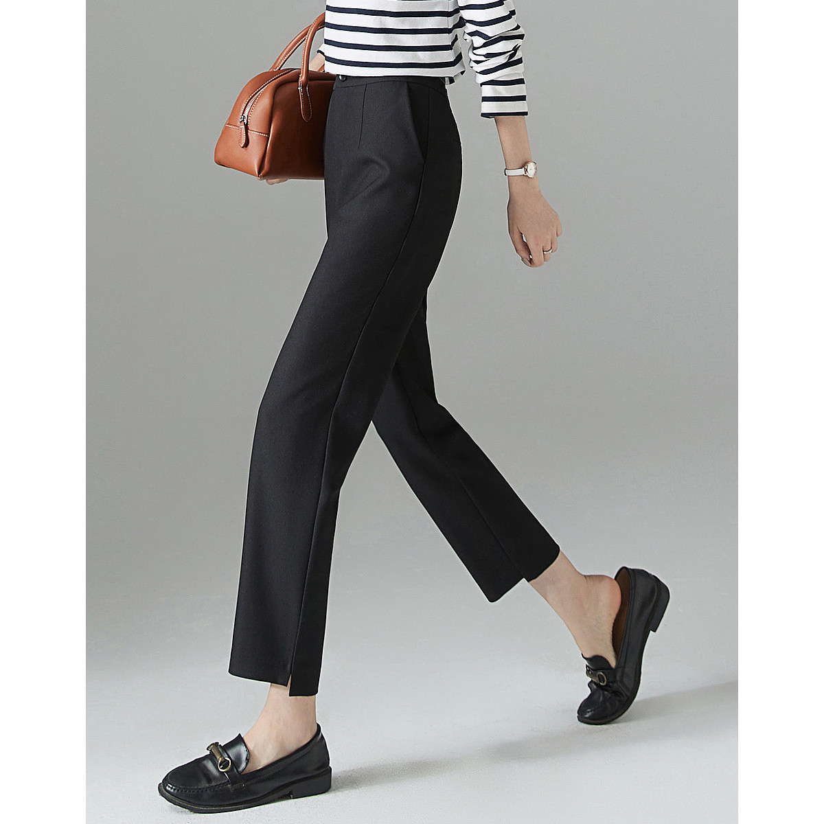春季裤子女春季含绵羊毛都市通勤时尚显瘦显高九分西装休闲裤 735259