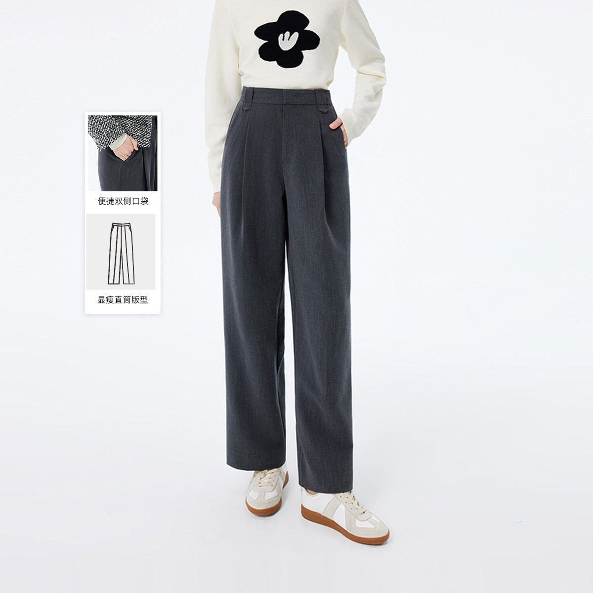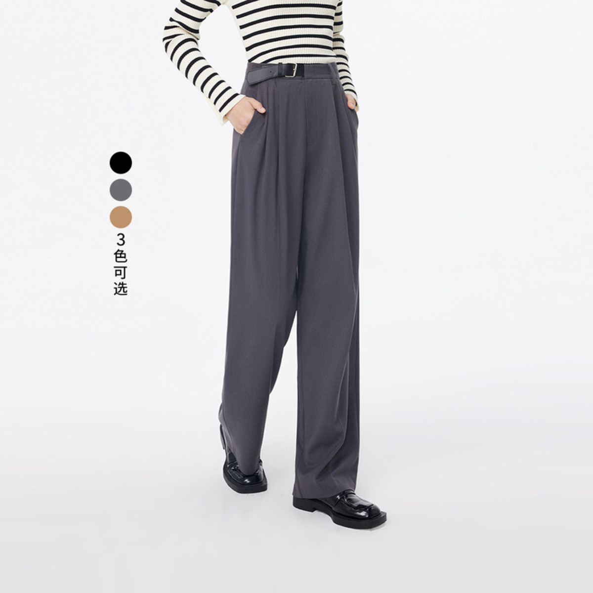 春季裤子女都市时尚气质通勤宽松垂感直筒裤阔腿裤西裤休闲裤女 466331