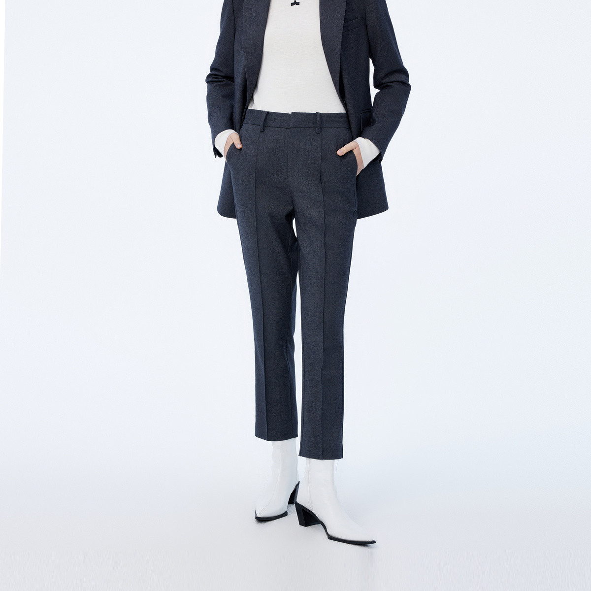 春季裤子女春季含绵羊毛气质通勤款不对称显瘦垂感西装休闲裤 965723