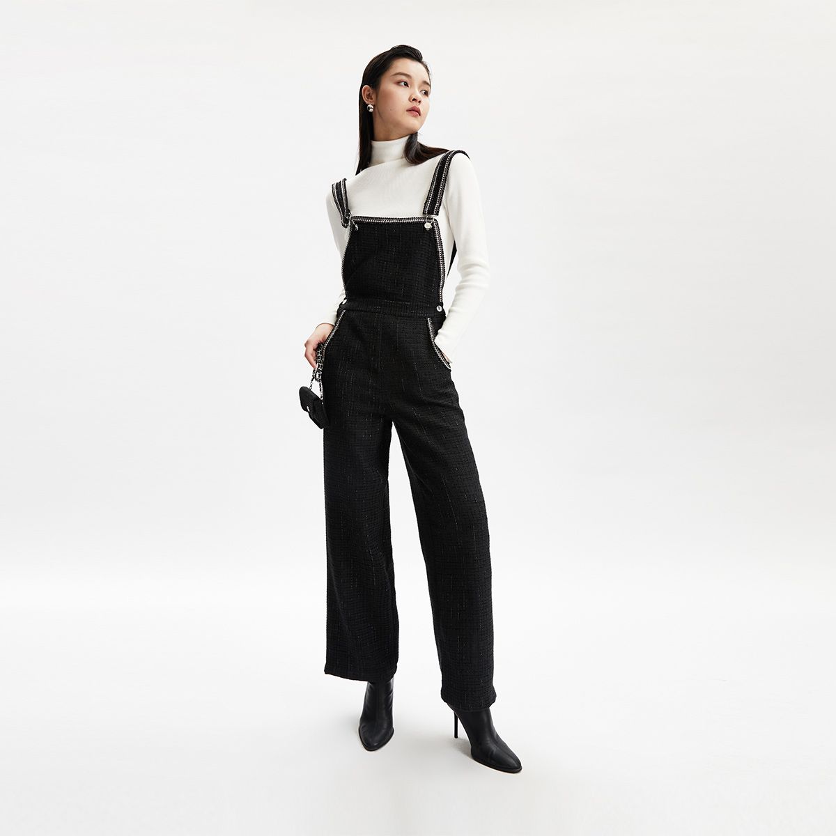 【专柜款】春夏优雅粗花呢面料九分直筒背带裤女气质百搭时尚 421393