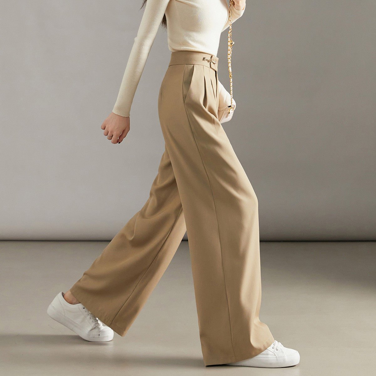 【含羊毛】美拉德阔腿裤女加厚春夏时髦保暖系绳休闲裤 744543