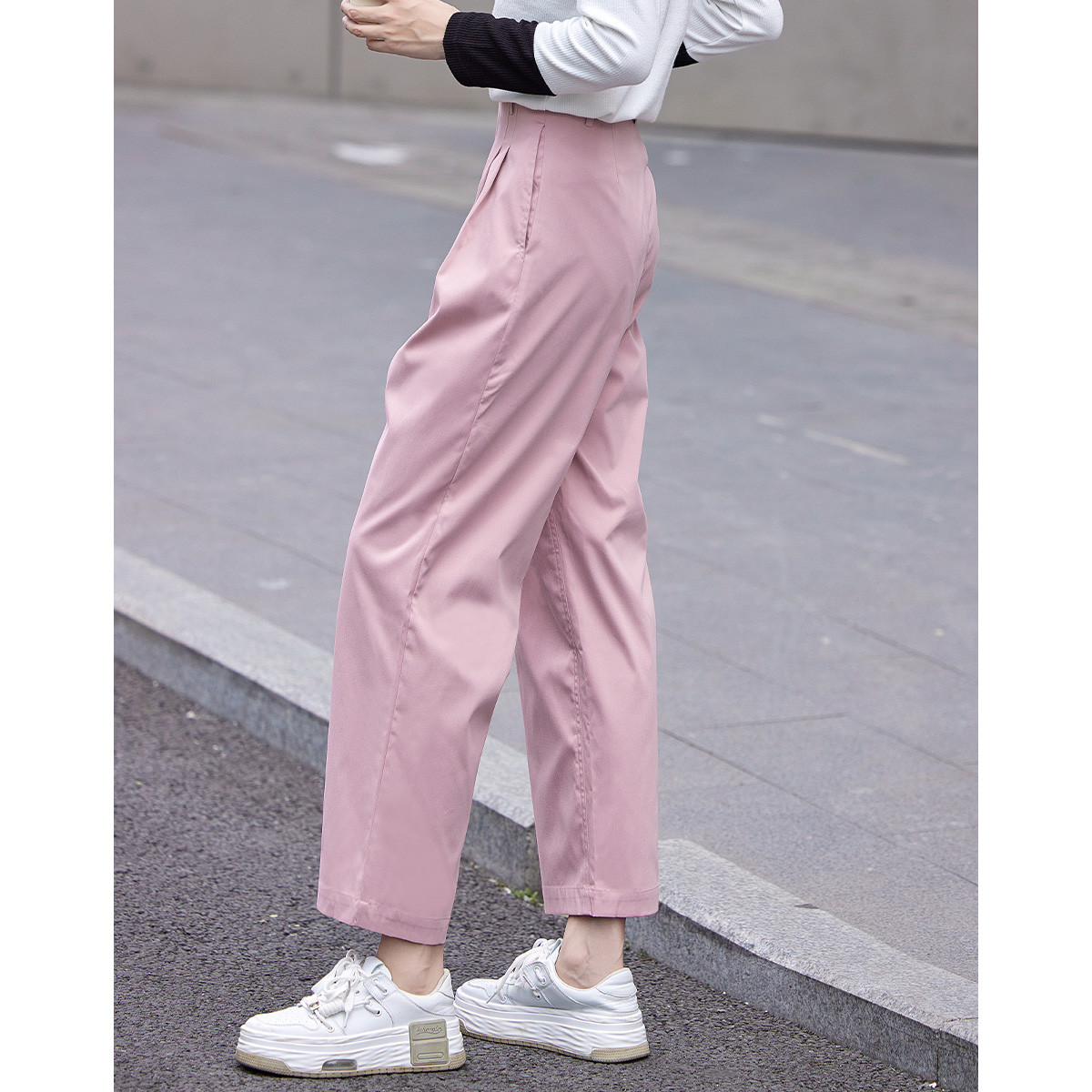 2025春装女装抗皱免熨烫束口裤女式时尚纯色休闲长裤 860184