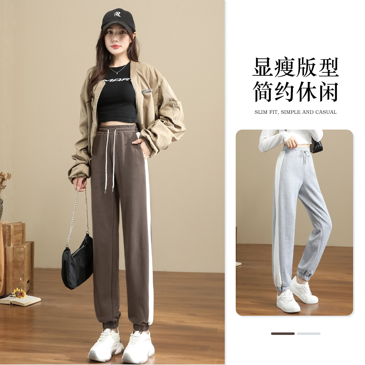 春秋潮款束脚抽绳休闲裤女高腰显瘦简约时尚保暖舒适休闲气质长裤 404161