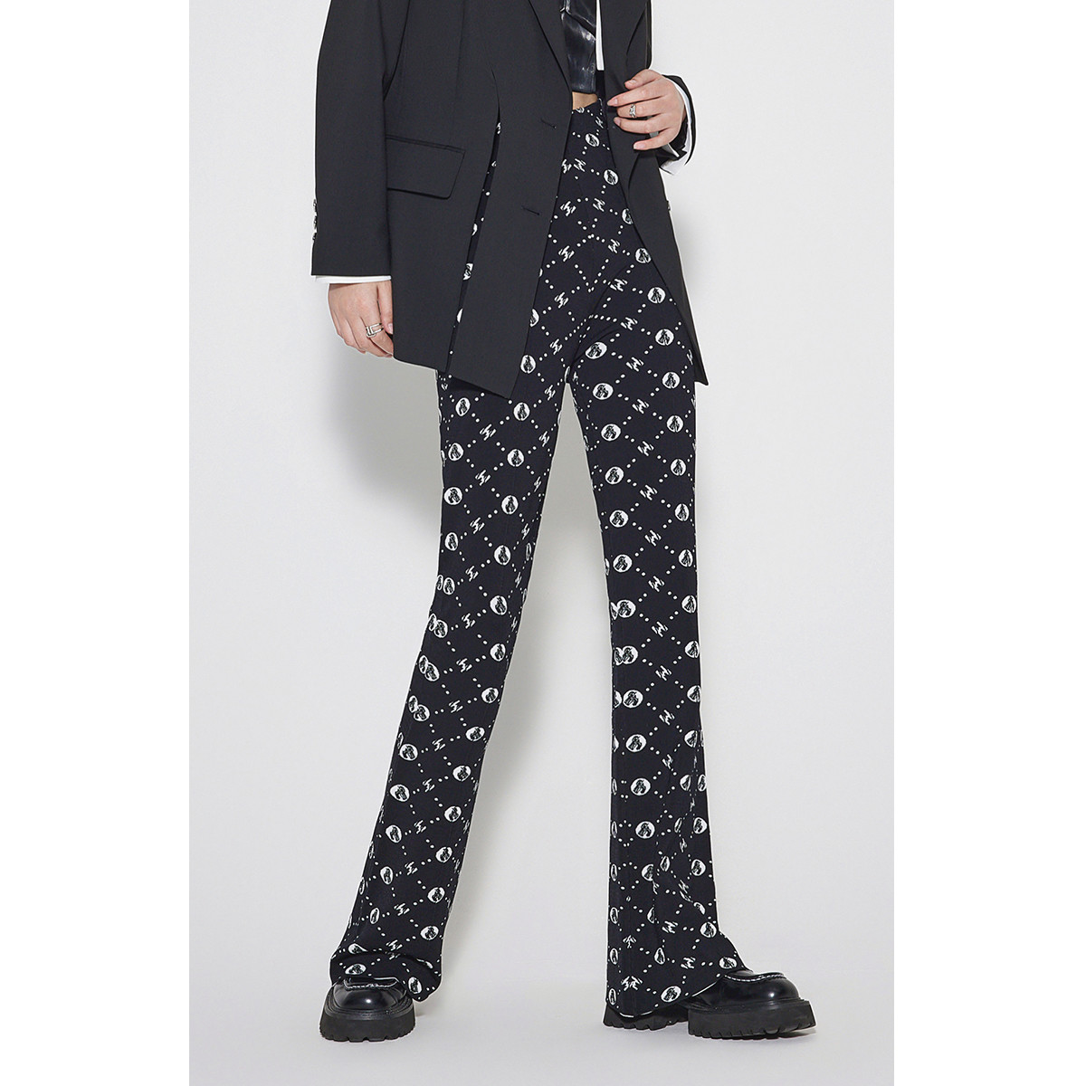 黑标系列 春装老花辣妹风高腰喇叭裤针织长裤女 536591