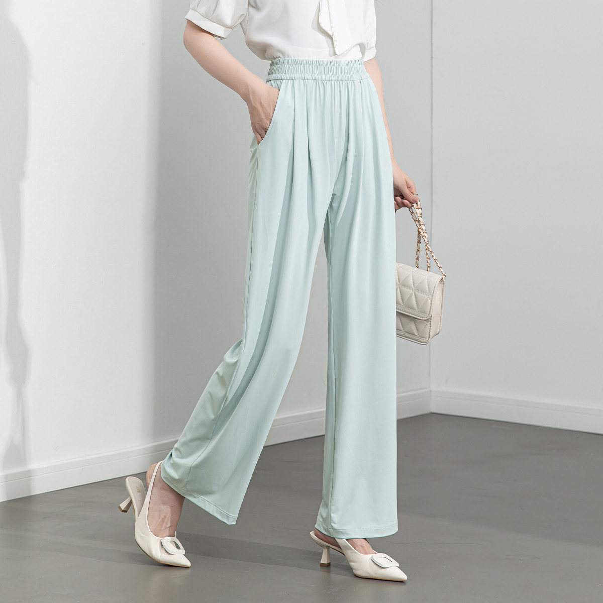 【肌理感】夏季时尚百搭高腰阔腿显瘦纯色休闲裤女 965466