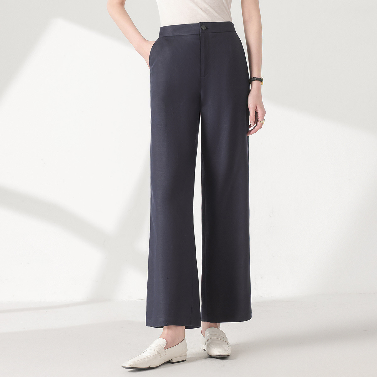 含桑蚕丝&亚麻~春夏纯色系扣休闲裤长裤百搭舒适简约直筒裤女 692243