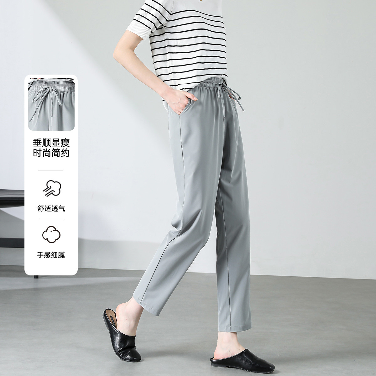【轻盈透气】速干裤简约通勤高腰藏肉显瘦亲肤柔软九分休闲裤女 035359