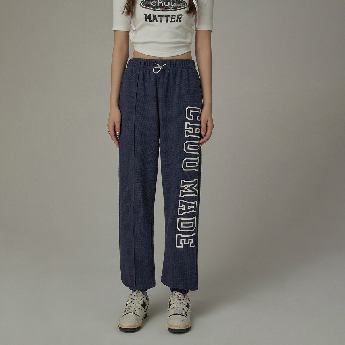 字母束脚休闲裤女士夏高腰华夫格印花长裤子 258003