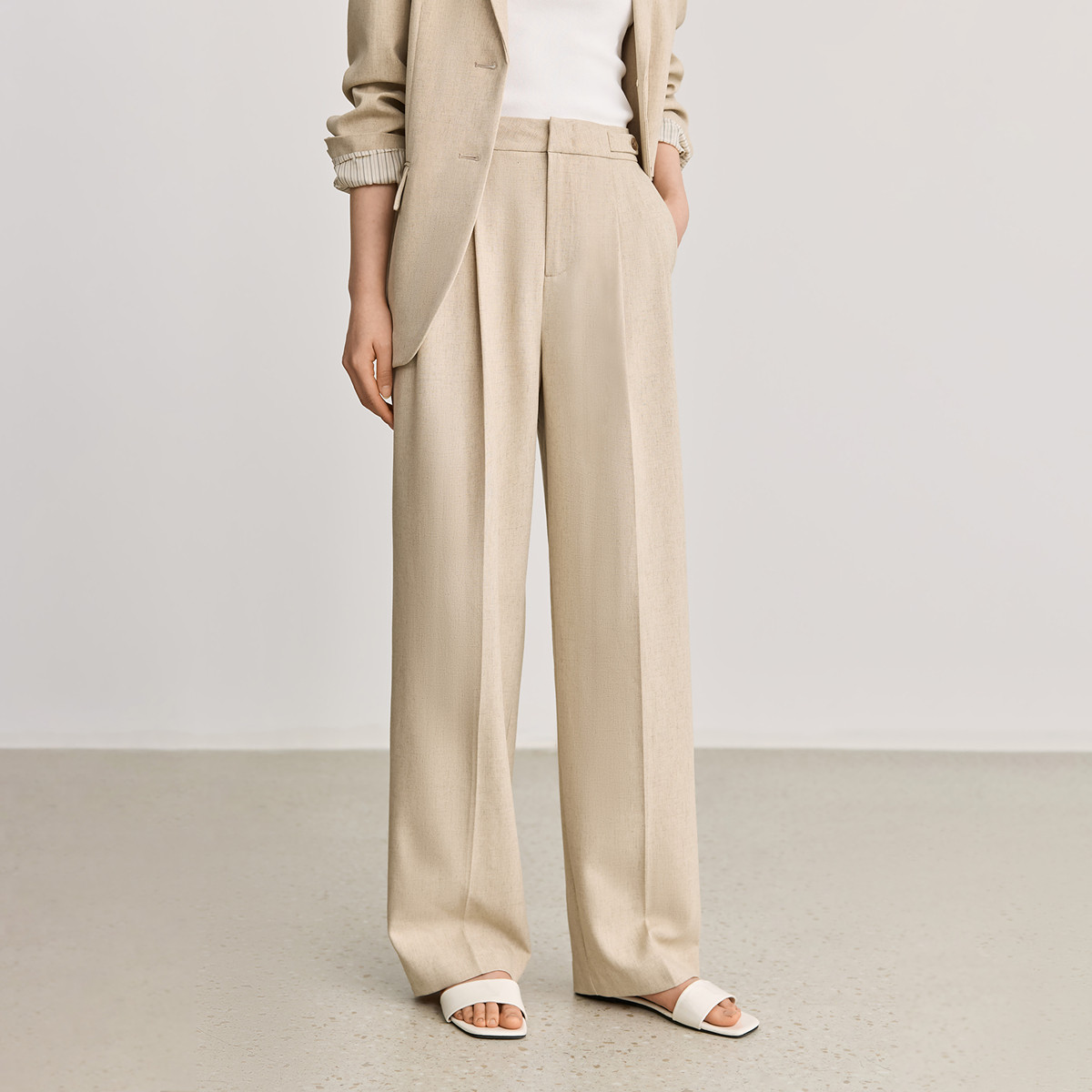 限定系列OCH.春装 亚麻宽松直筒显瘦休闲立褶阔腿长裤女 355023