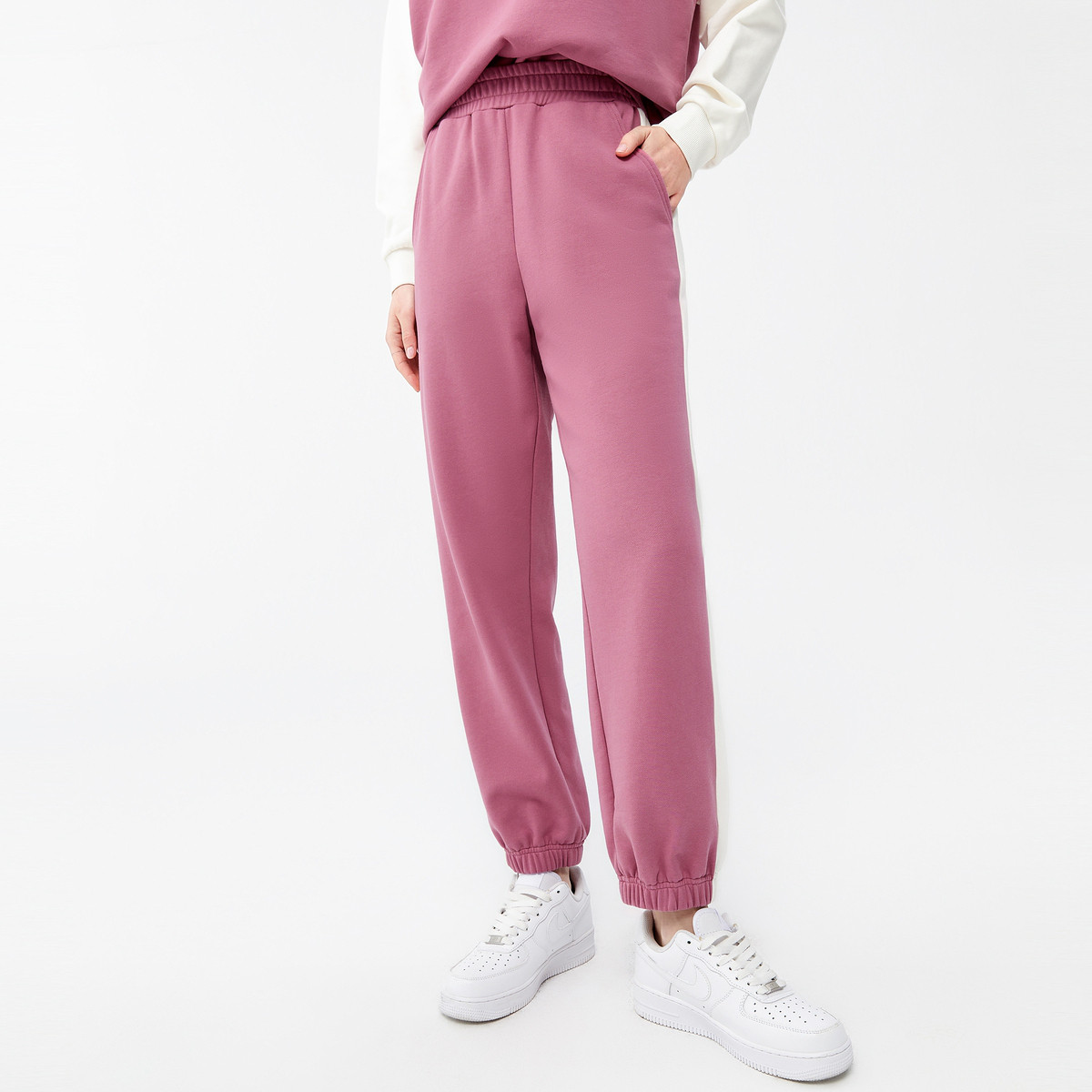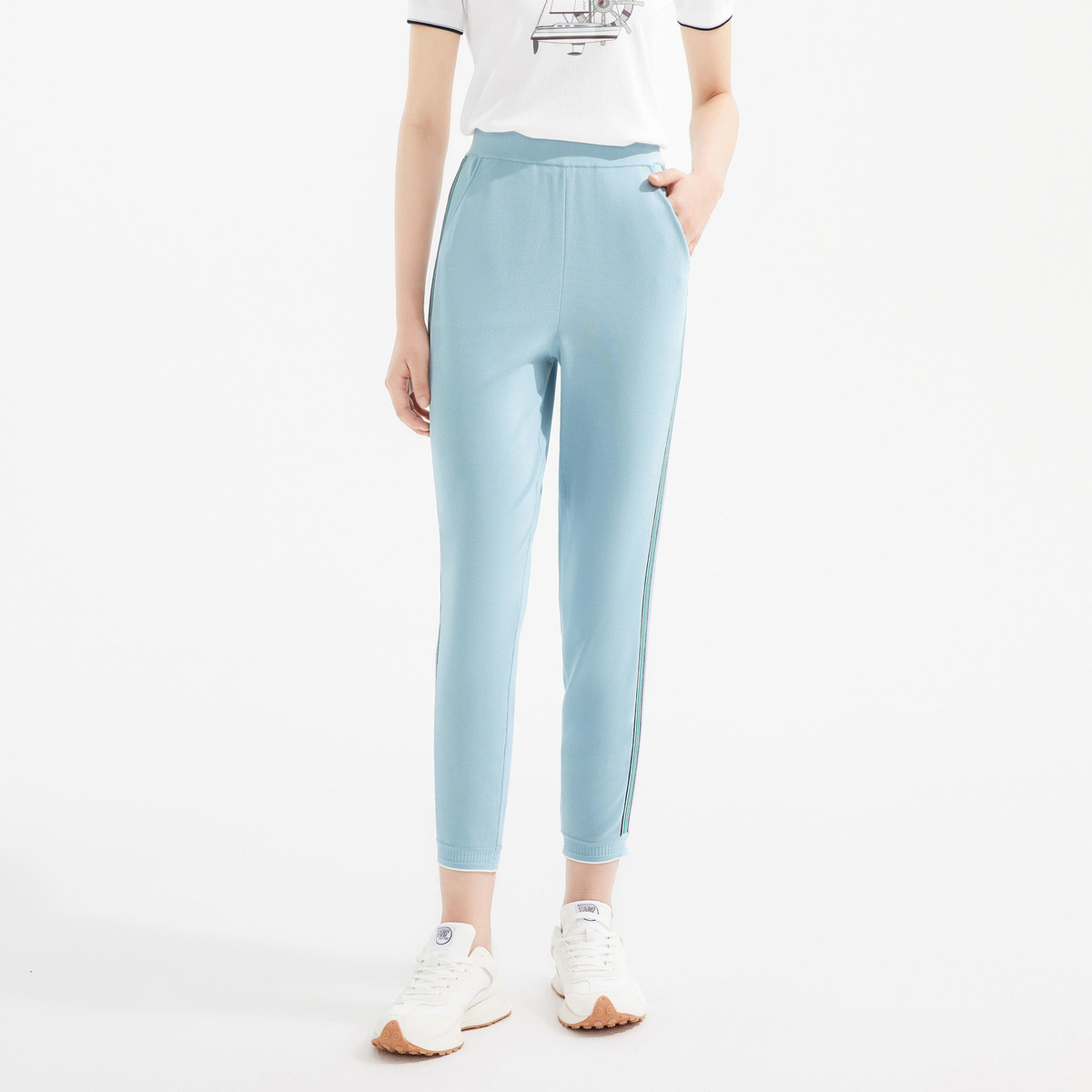 玖姿春季宽松运动束脚撞色拼接女式休闲裤 572492