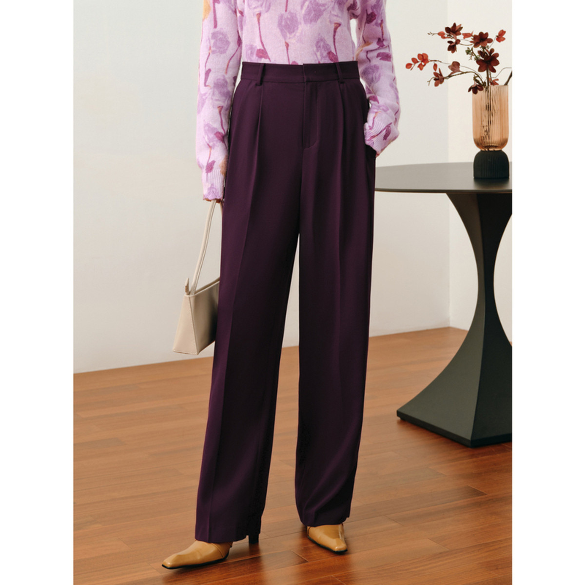 玖姿旗下安娜蔻系列通勤OL风无龄化直筒裤醋酸长款西裤秋季 323980