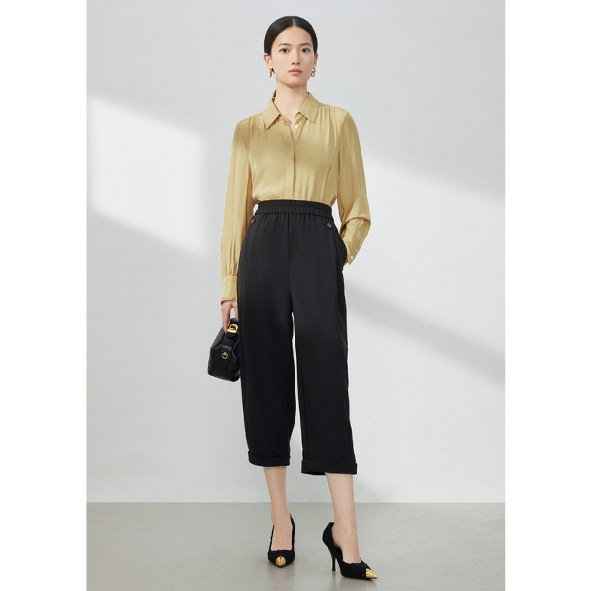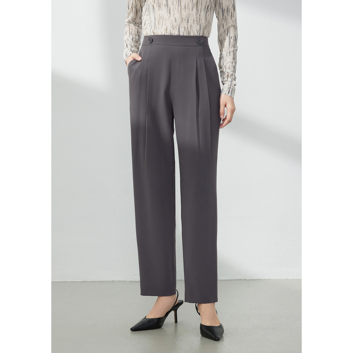 JZ玖姿压褶通勤女装春季职业OL风休闲裤 342540