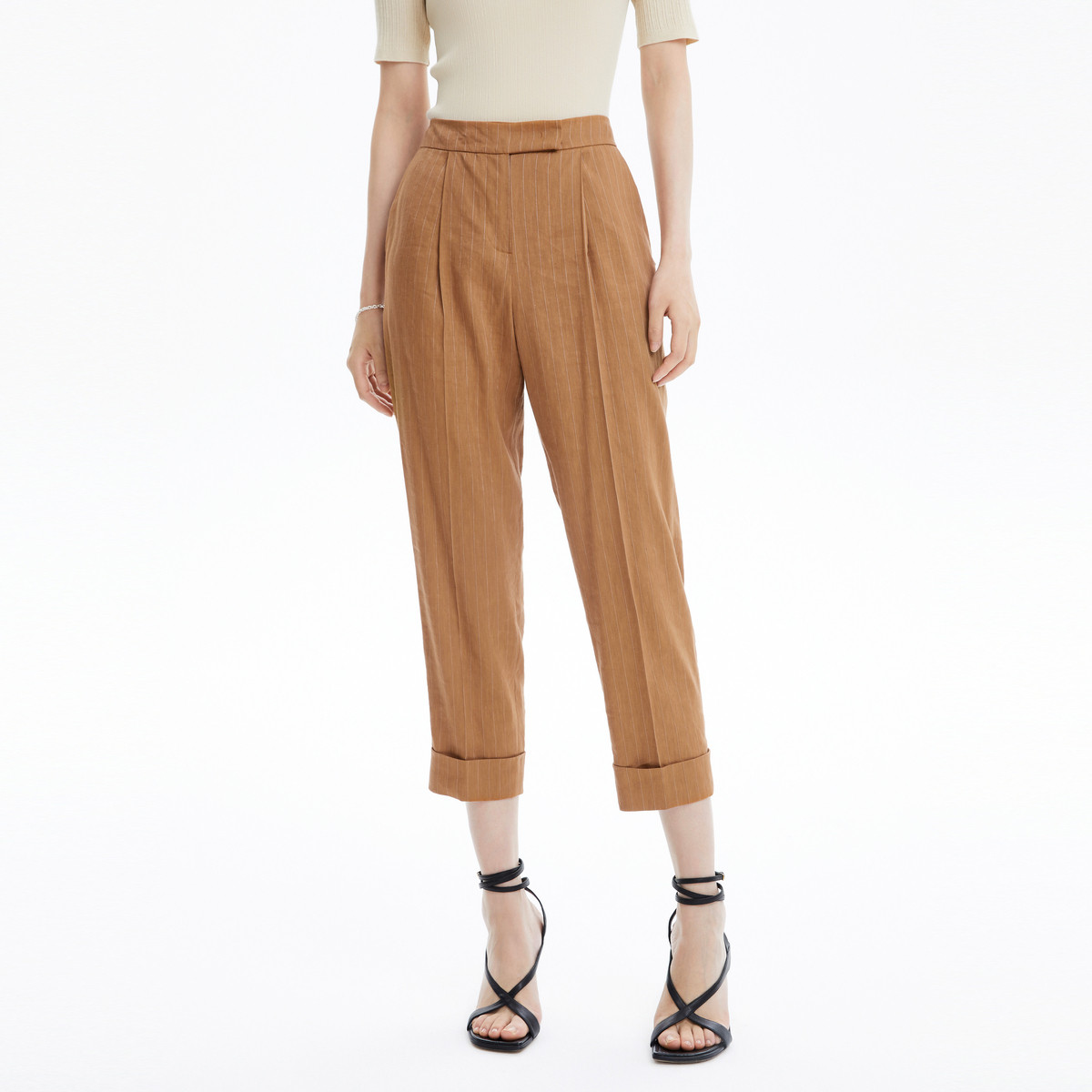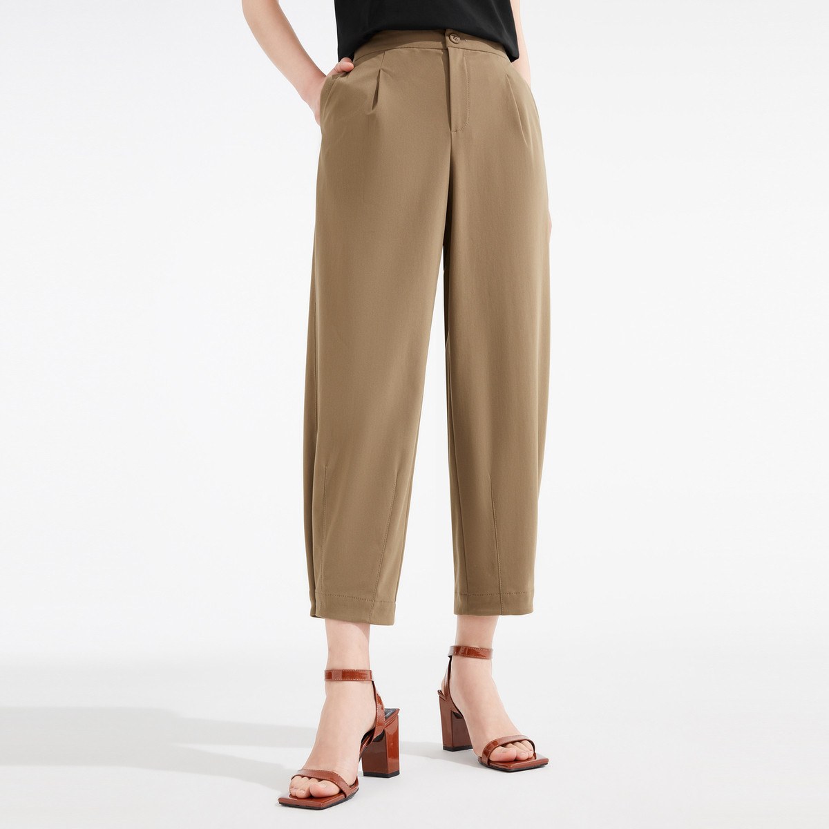 玖姿旗下安娜蔻系列商务通勤OL风压褶锥形裤子TR休闲女秋季 370636