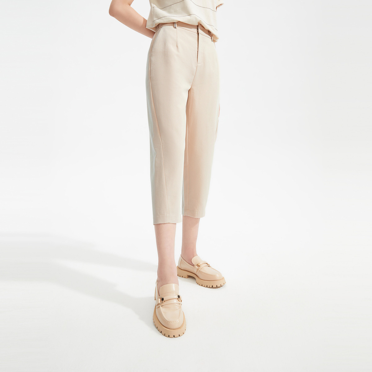 JZ玖姿夏季浅麦色天丝哈伦裤型女式休闲裤 678924