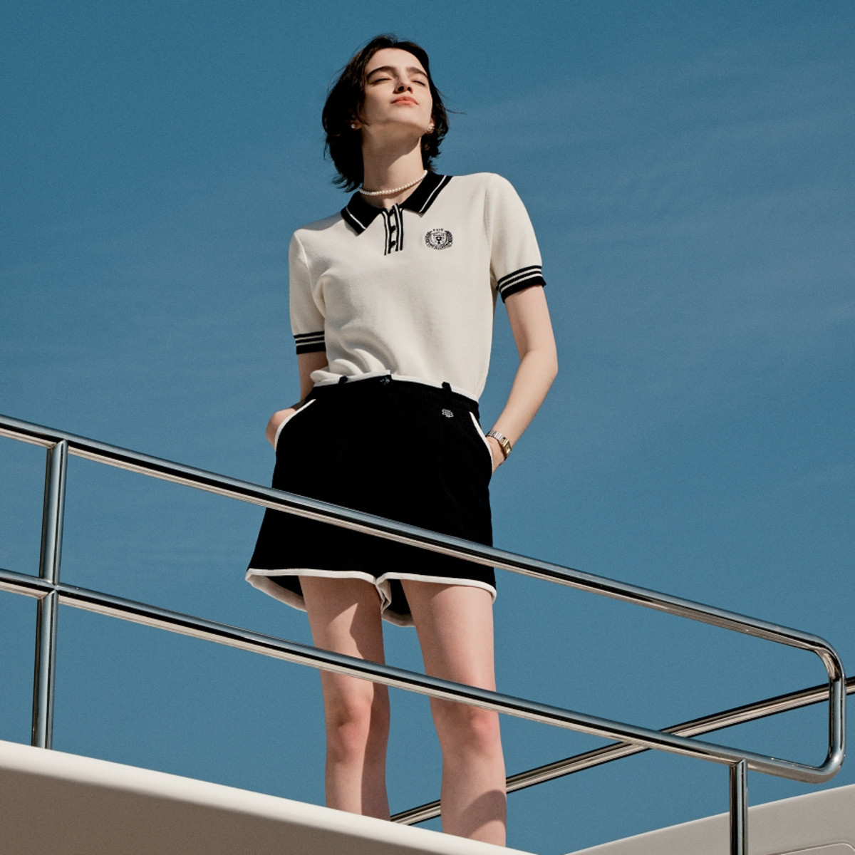 小熊夏款舒适学院风肌理感撞色短裤子女 860545