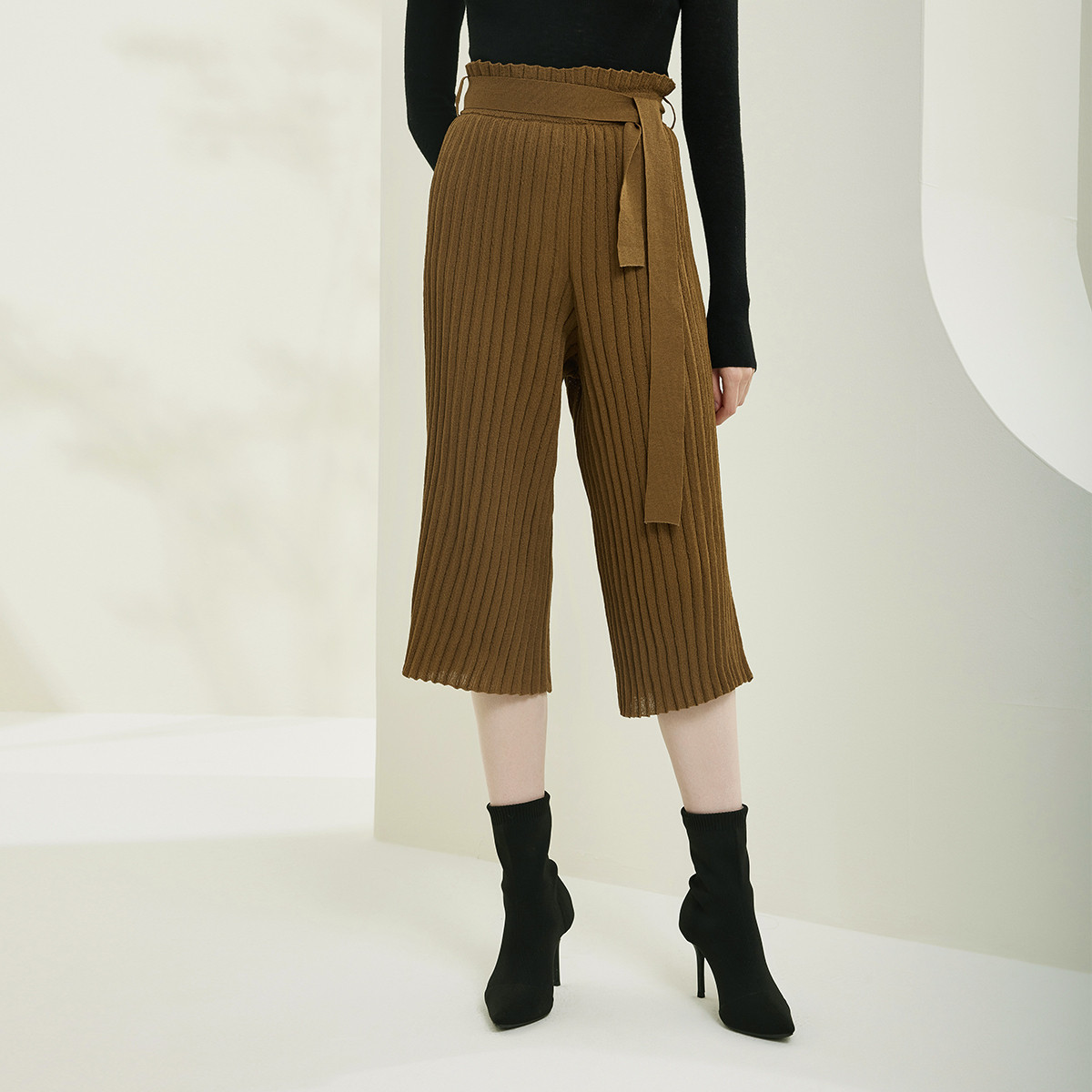 商场同款时尚压褶裤阔腿裤日常通勤休闲条纹针织裤女式休闲裤 082271
