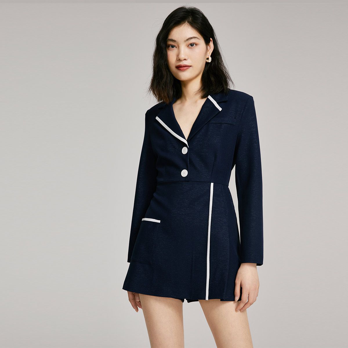 【连体短裤季】春夏翻领双排扣泡泡袖A摆连体短裤女气质百搭时尚 632465