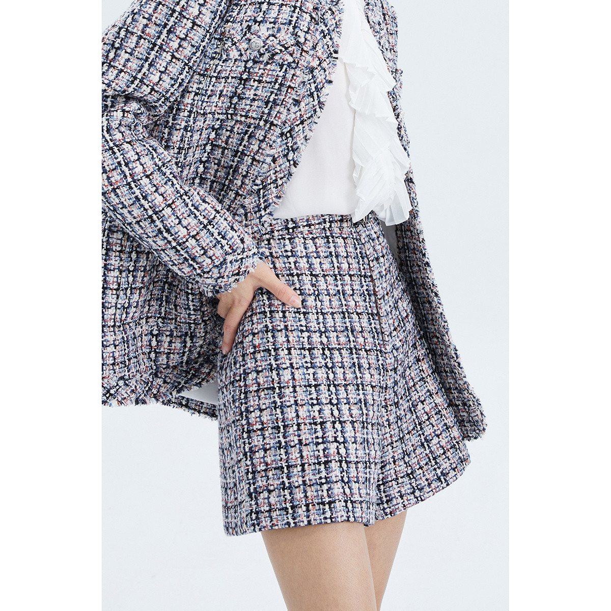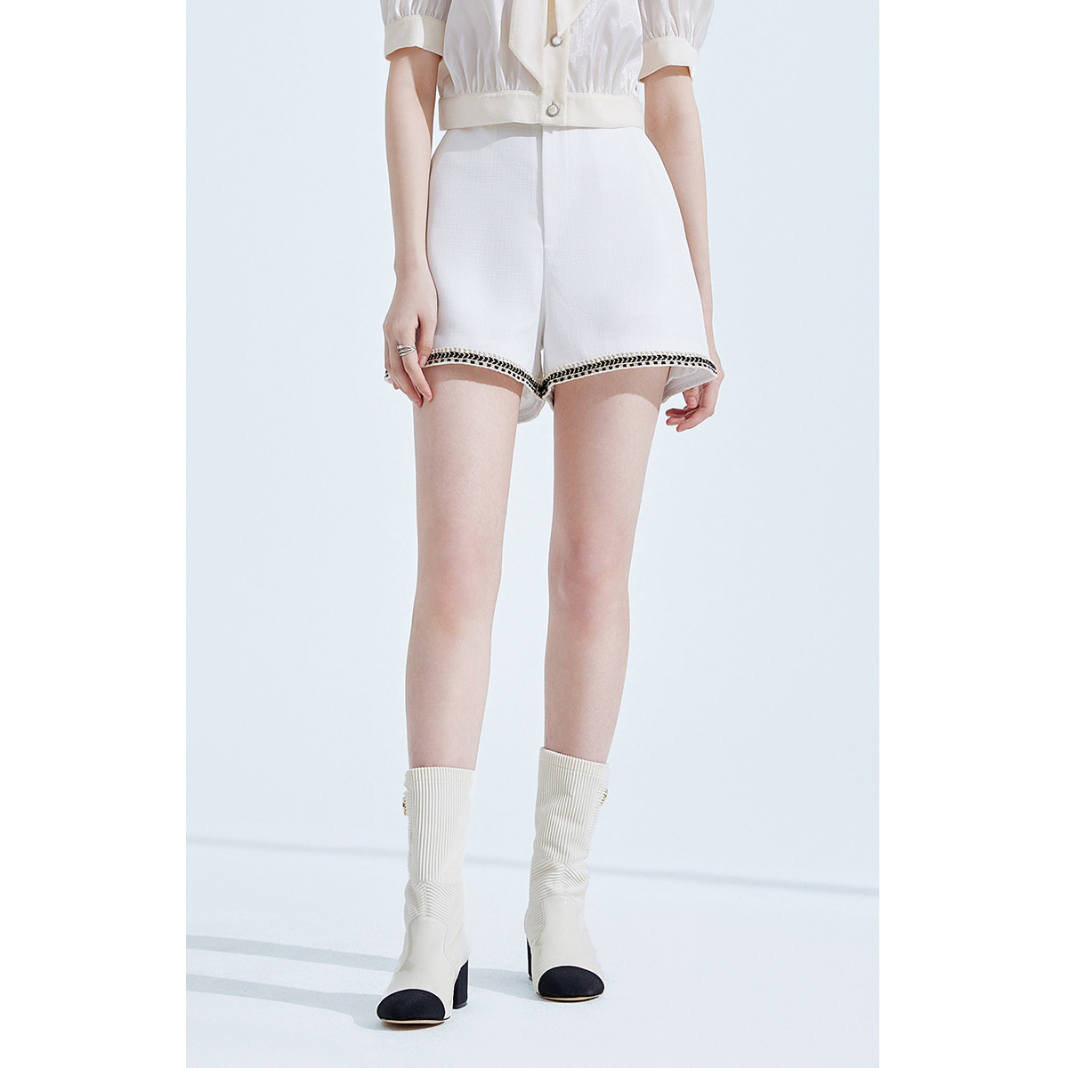黑标系列 夏装法式休闲金银线织带小香风短裤女 932943